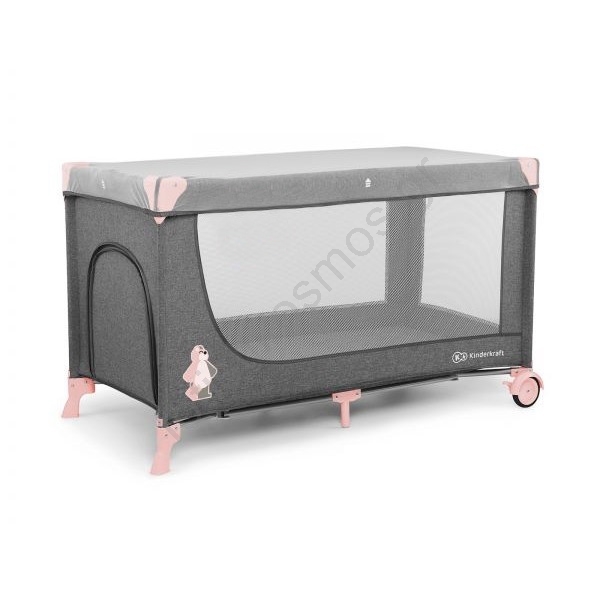 KINDERKRAFT - Πτυσσό κρεβάτι JOY σε γκρι-ροζ απόχρωση | Fotisti kosmos