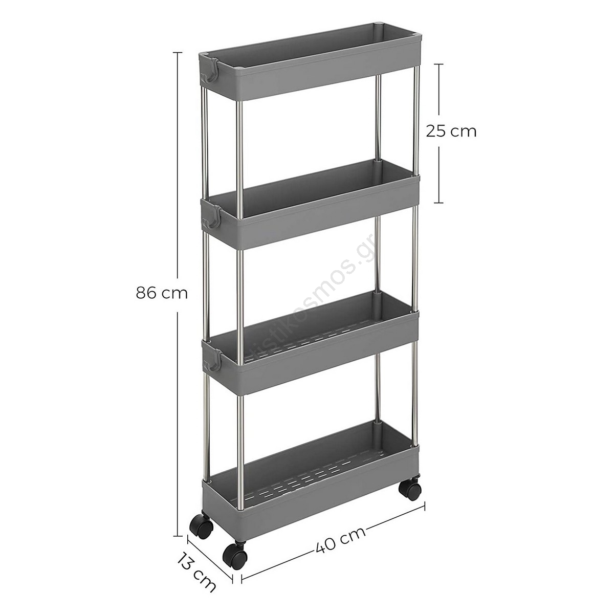 • Αυτό το αποθηκευτικό καρότσι χωράει σε περιορισμένους χώρους στην κουζίνα, το μπάνιο, το υπνοδωμάτιο ή τον χώρο του πλυντηρίου, βοηθώντας σας να αξιοποιήσετε το χώρο όσο το δυνατόν καλύτερα.