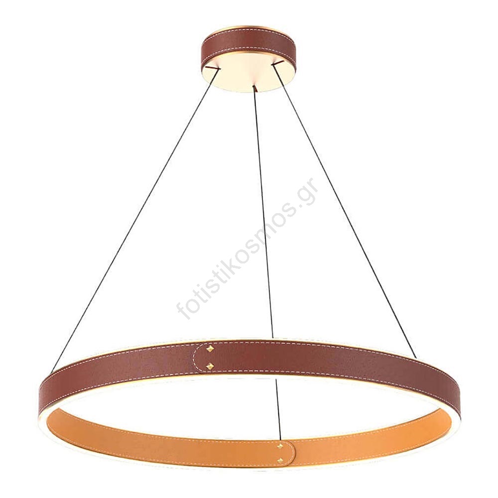 Klausen 142027 - Κρεμαστό φωτιστικό οροφής LED LEATHER LED/47,8W/230V καφέ/πορτοκάλι | Fotisti kosmo