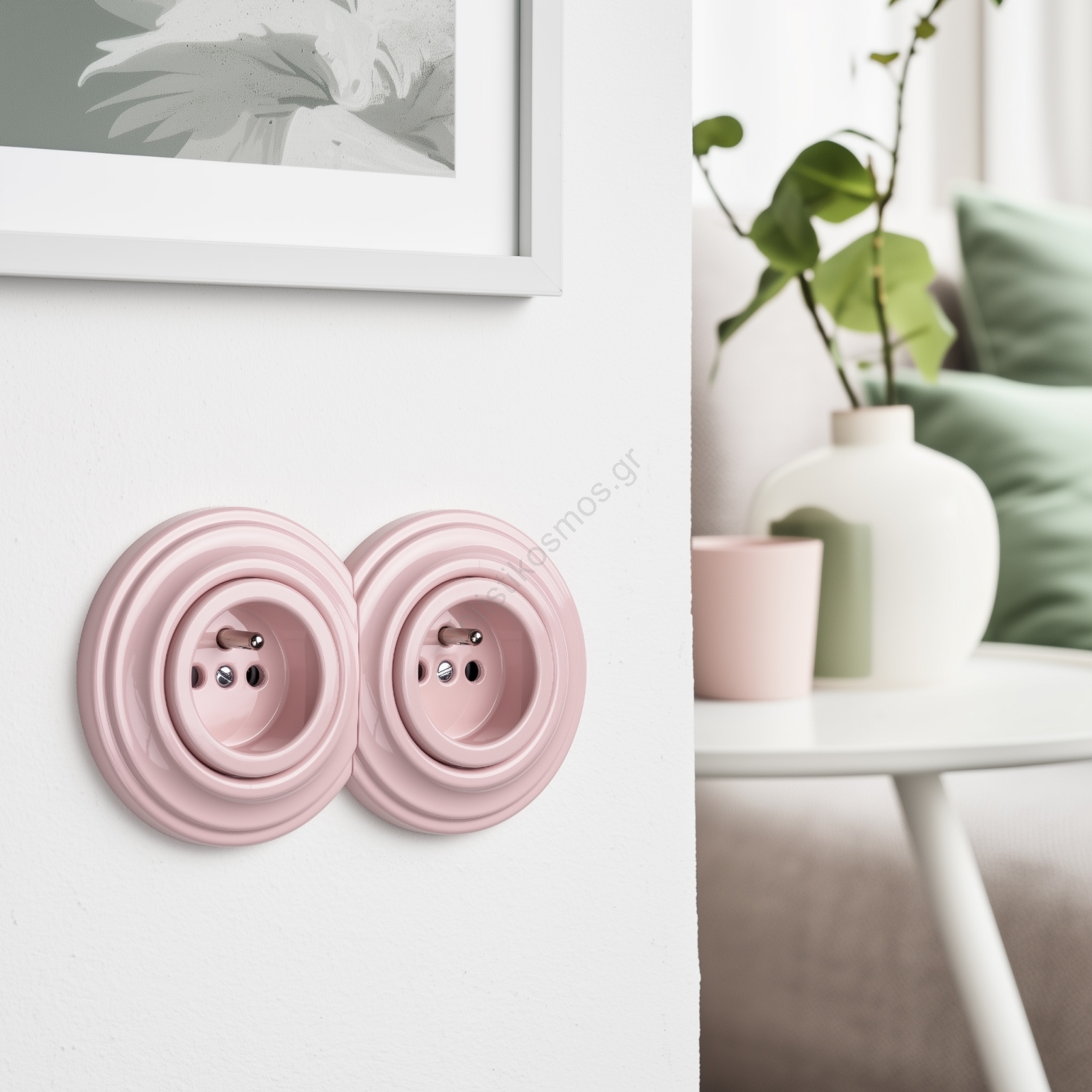 • Kliklap - Διπλή ρετρό οικιακή πρίζα με πλαίσιο 230V σε αντικέ ροζ