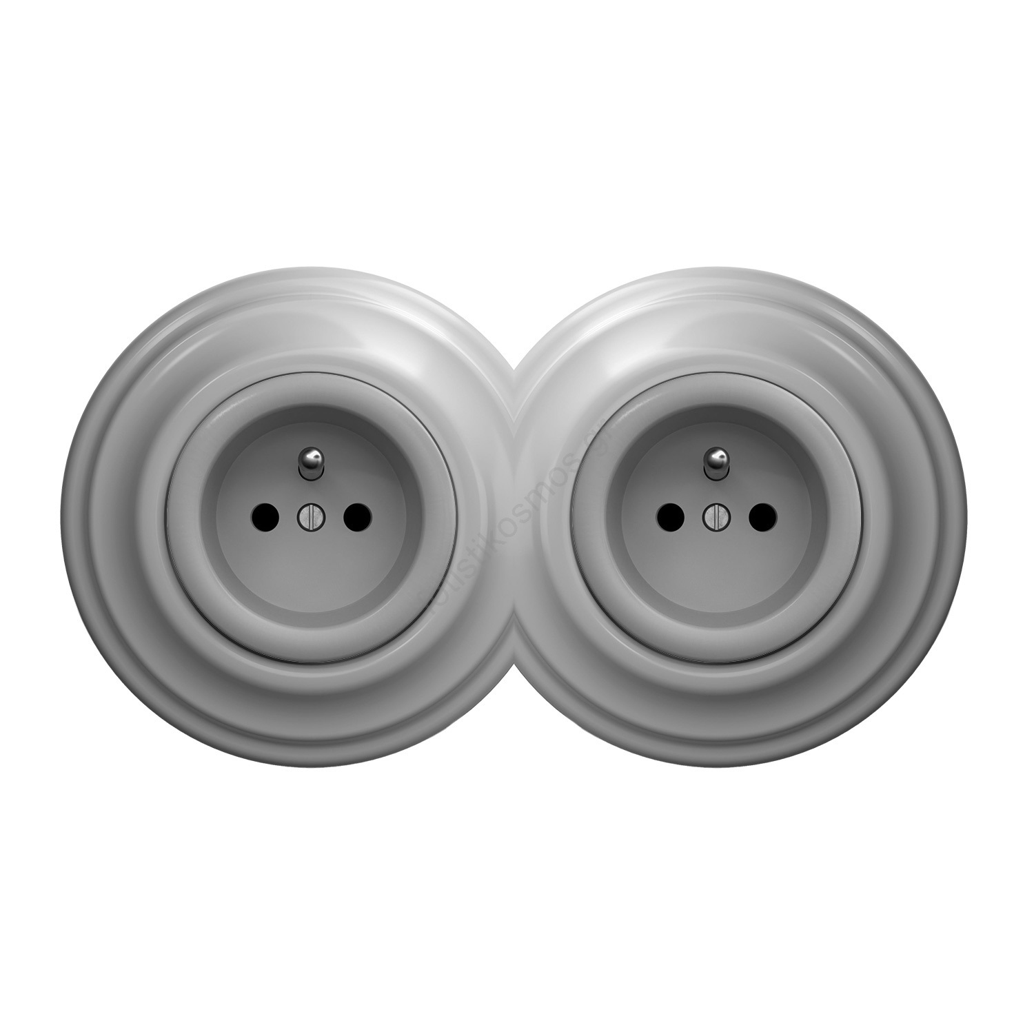 Kliklap - Διπλή ρετρό οικιακή πρίζα με πλαίσιο, 230 V, γκρι