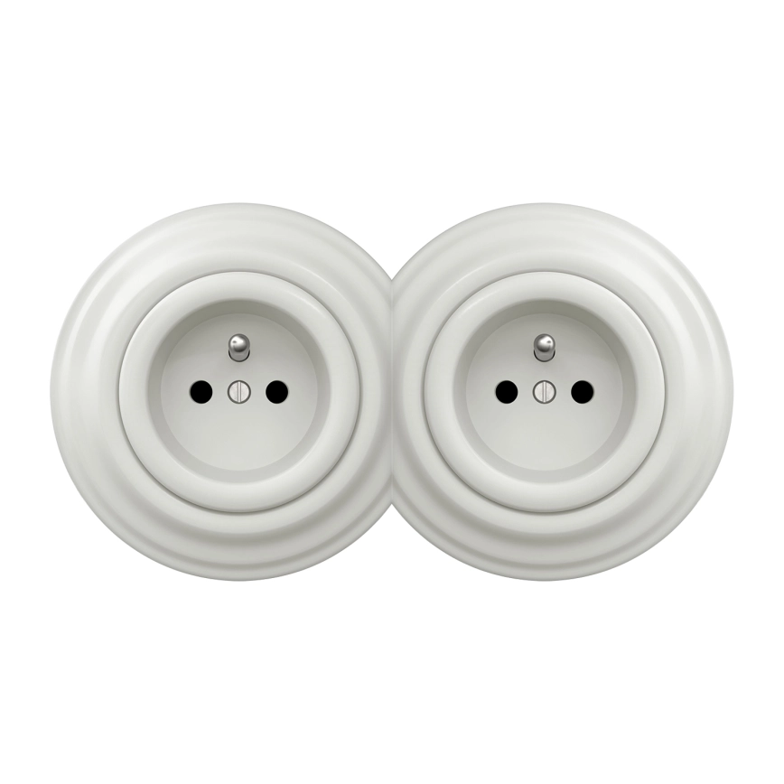 Kliklap - Διπλή ρετρό πρίζα με πλαίσιο 230V λευκή
