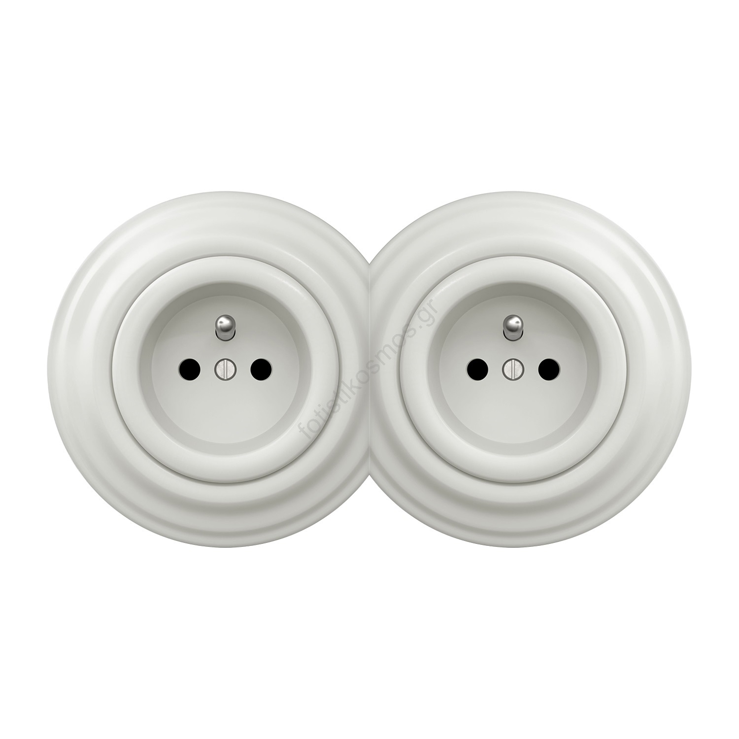 Kliklap - Διπλή ρετρό πρίζα με πλαίσιο 230V λευκή | Fotisti kosmos