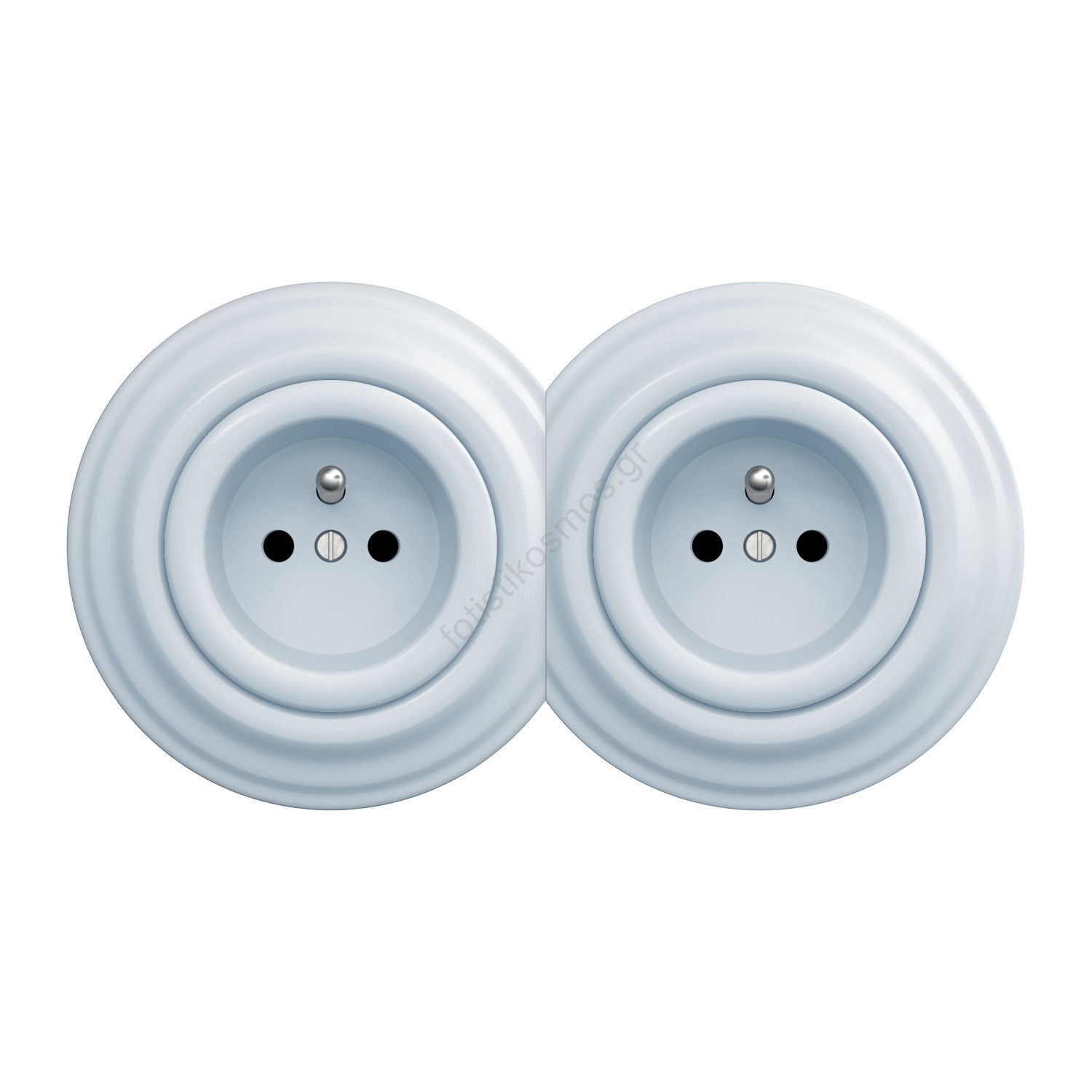 Kliklap - Διπλή ρετρό πρίζα με πλαίσιο 230V, μπλε