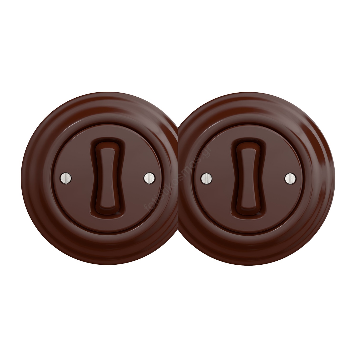 Kliklap - Διπλός ρετρό μονοπολικός διακόπτης με πλαίσιο αρ. 1, καφέ | Fotisti kosmos