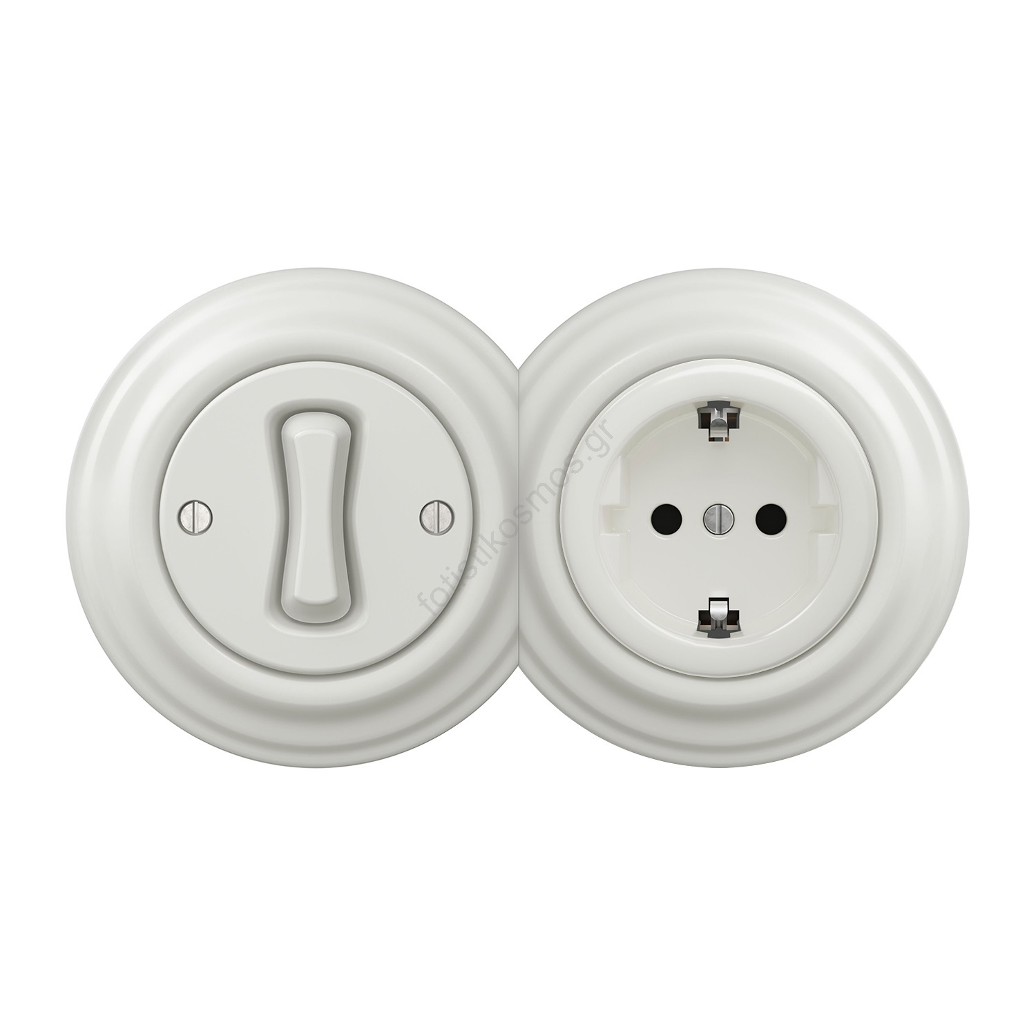 • Kliklap - Ρετρό μονοπολικός διακόπτης αρ. 1 και πρίζα SCHUKO 230V με λευκό κεραμικό πλαίσιο