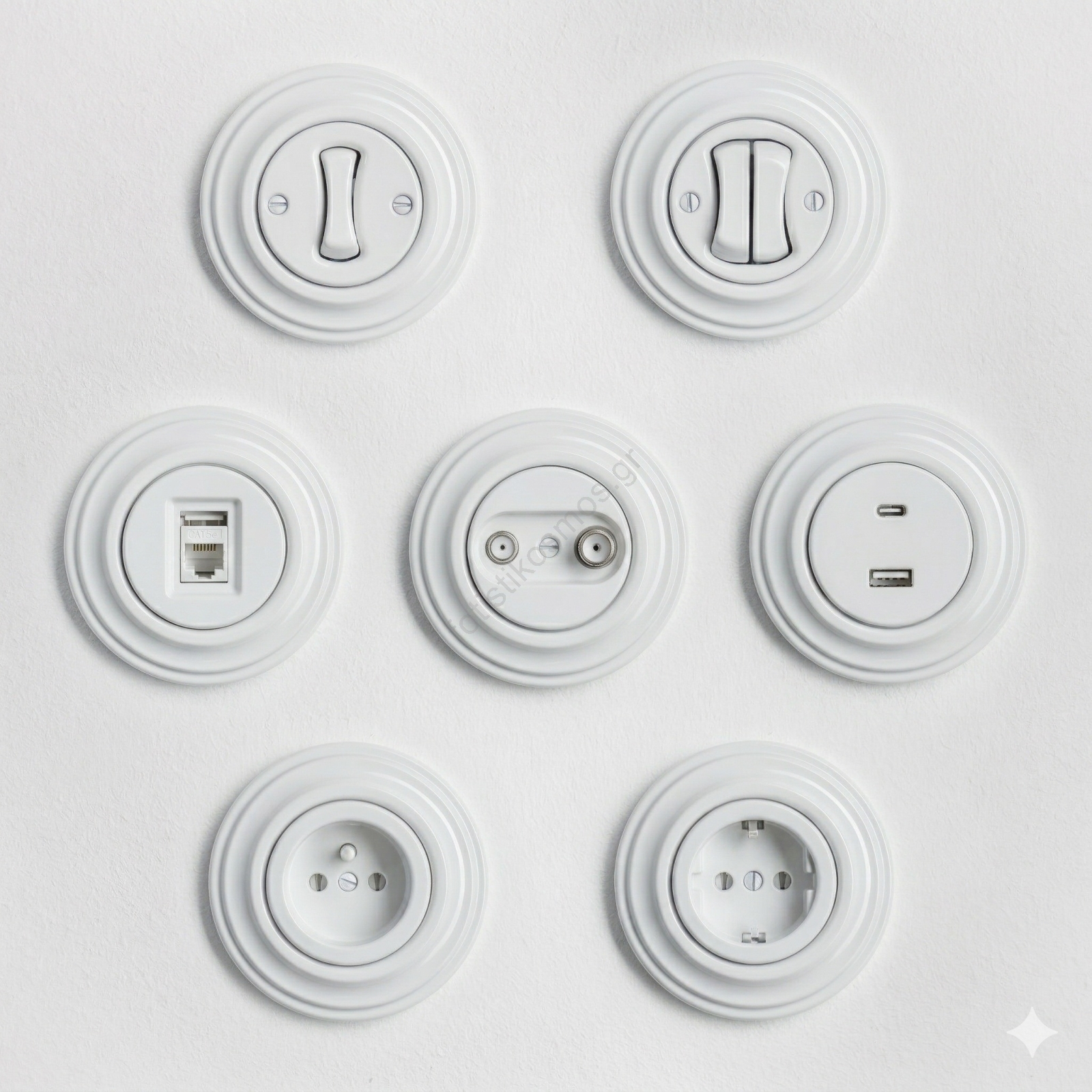 • Kliklap - Ρετρό σειριακός διακόπτης με πλαίσιο αρ. 5, λευκό κεραμικό