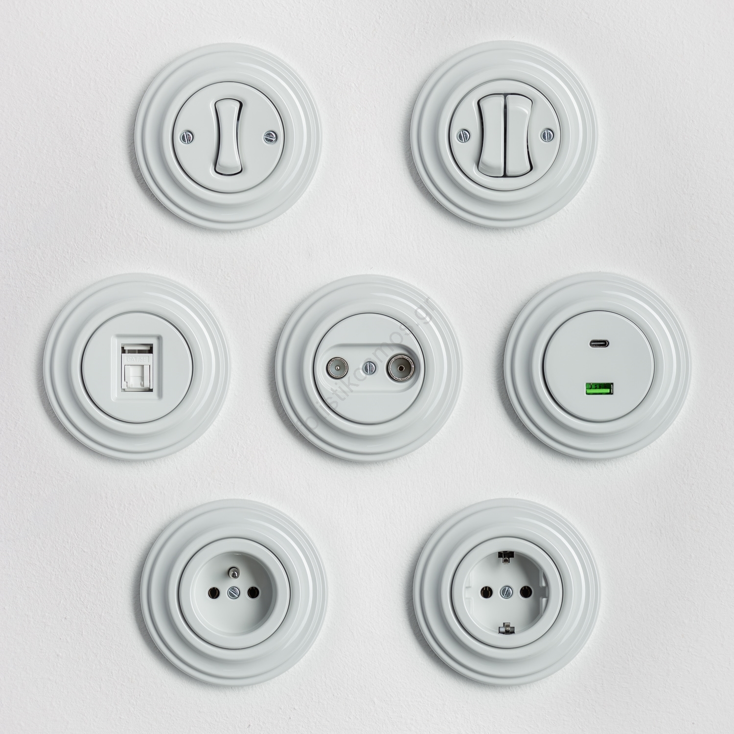 Kliklap - Ρετρό σειριακός διακόπτης με πλαίσιο αρ. 5, λευκό κεραμικό