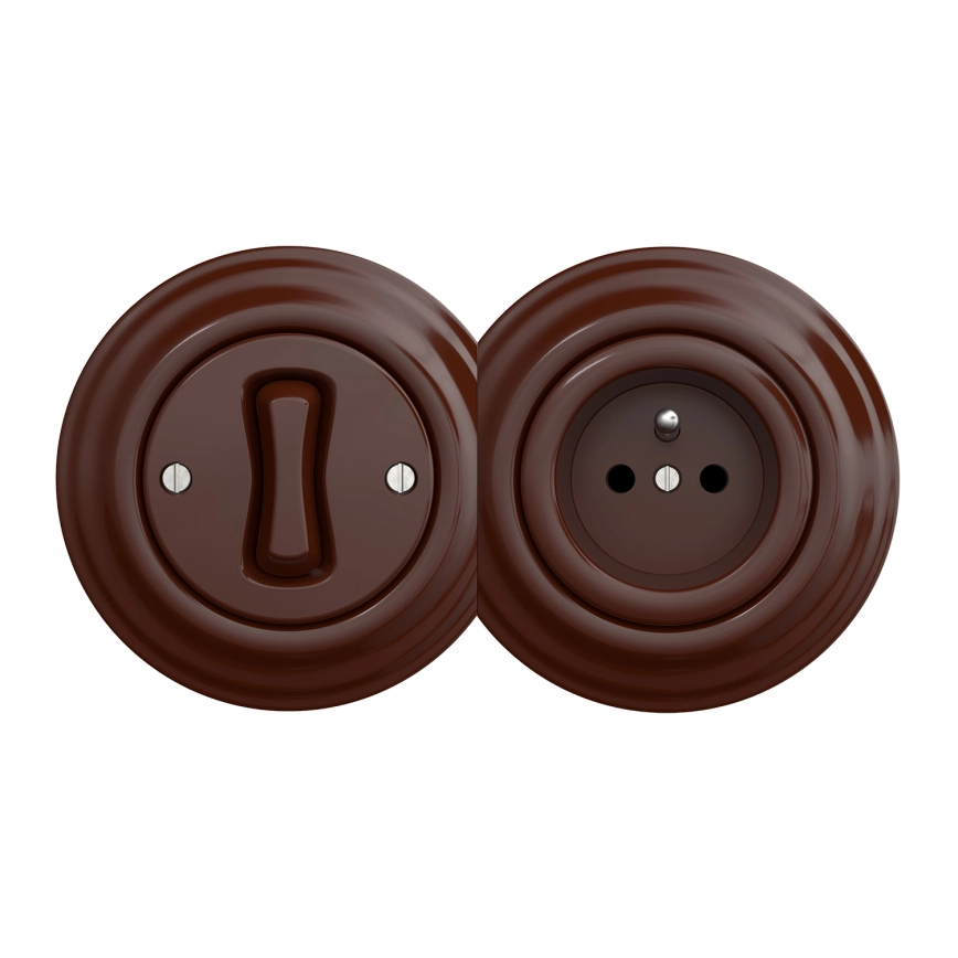 Kliklap - Ρετρό μονόπολος διακόπτης αρ. 1 και πρίζα 230V με πλαίσιο, καφέ | Fotisti kosmos
