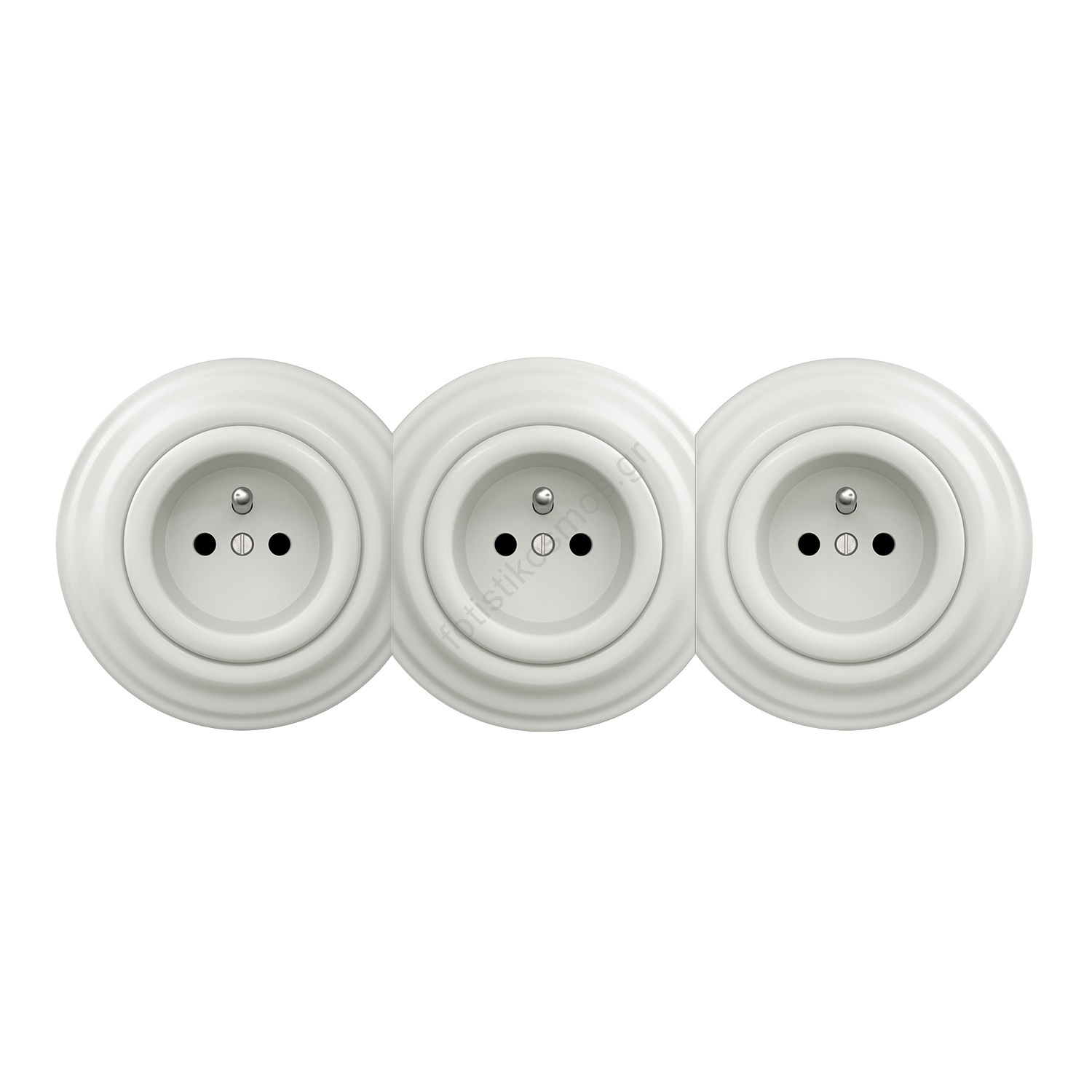 Kliklap - Τριπλή ρετρό οικιακή πρίζα με πλαίσιο 230 V, λευκή | Fotisti kosmos