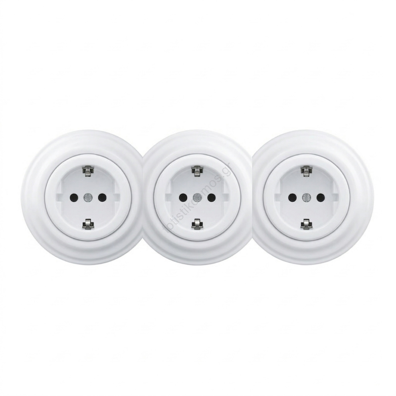 • Kliklap - Τριπλή ρετρό οικιακή πρίζα με πλαίσιο SCHUKO 230V, κεραμική, λευκή