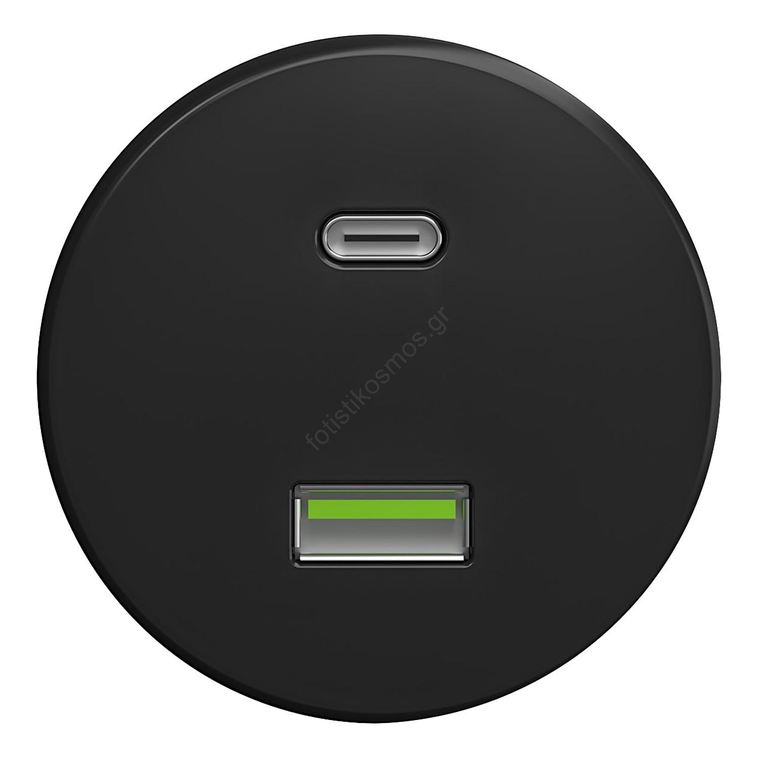 Kliklap - Ρετρό USB πρίζα A+C χωρίς πλαίσιο μαύρη | Fotisti kosmos