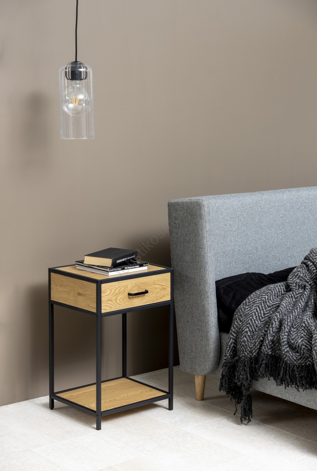• Αυτό το κομοδίνο, εμπνευσμένο από βιομηχανικό σχεδιασμό, συνδυάζει φυσικά και βιομηχανικά στοιχεία που αλληλοσυμπληρώνονται άψογα.