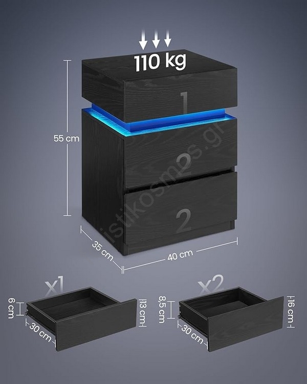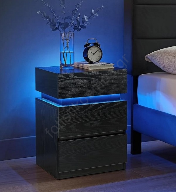 Κομοδίνο SMARTIE με ενσωματωμένο φωτισμό, μαύρο | Fotisti kosmos