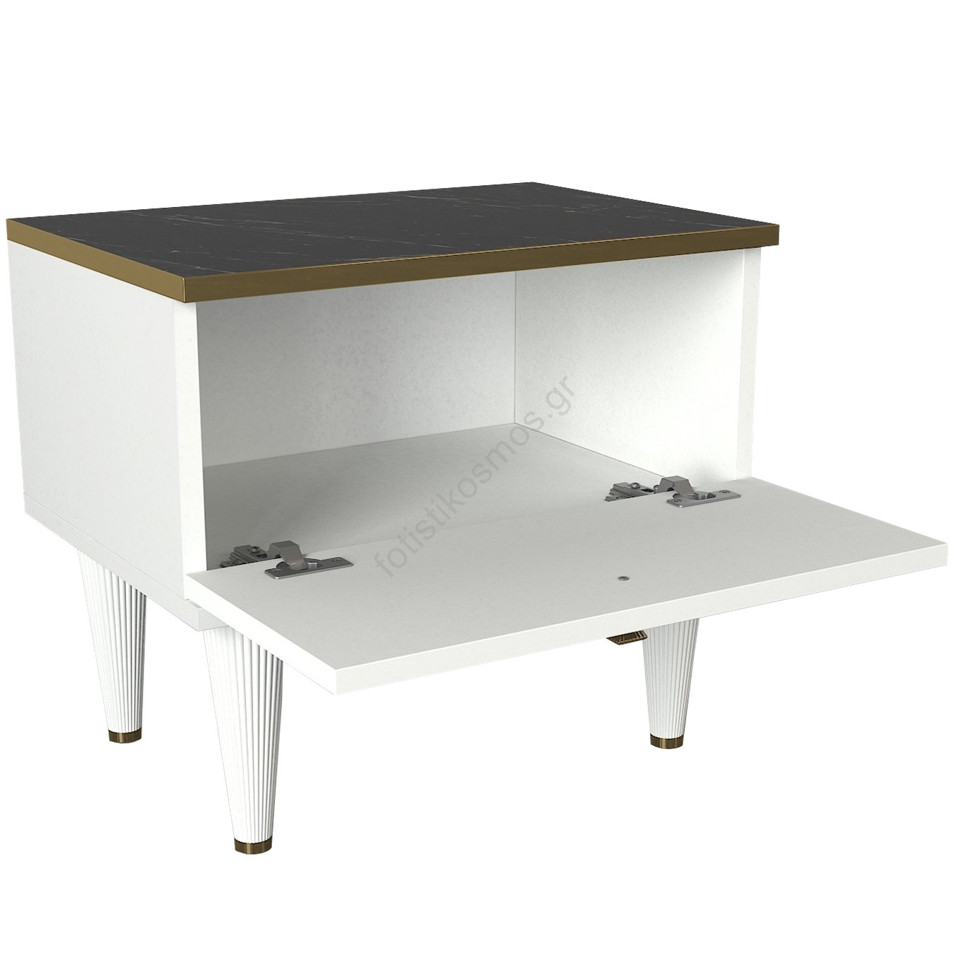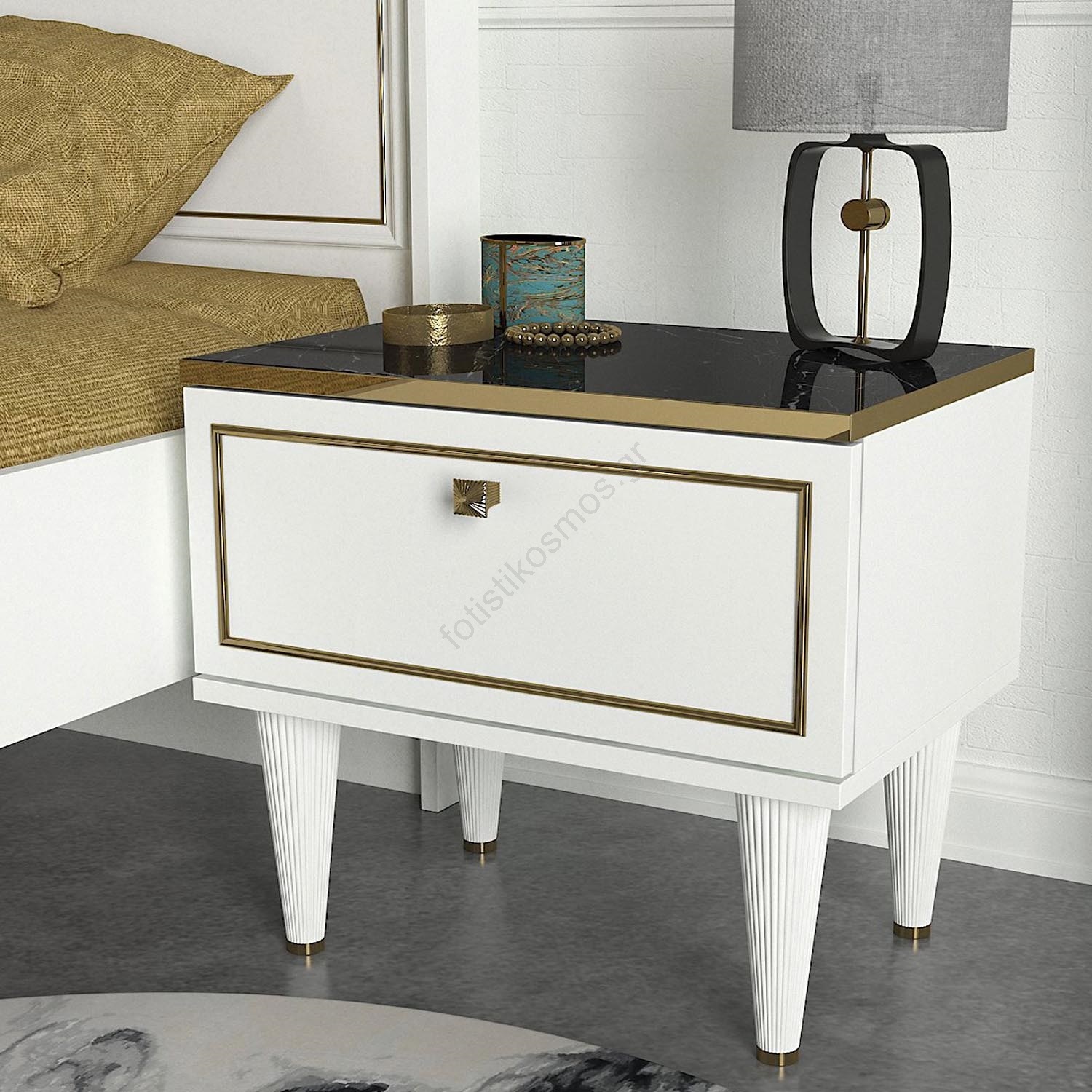 Κομοδίνο RAVENNA 47,2x50 cm λευκό/μαύρο/χρυσό | Fotisti kosmos