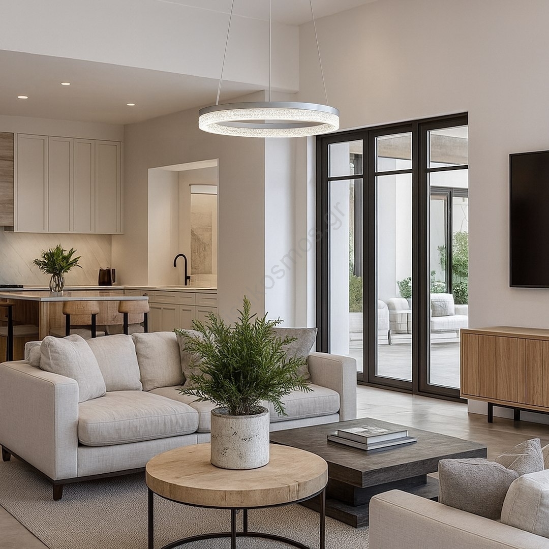 • Κρεμαστό φωτιστικό LED GALA με καλώδιο, 25W/230V, Ø 50 εκ., ασημένιο