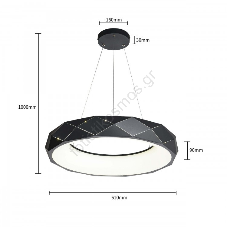 Κρεμαστό φωτιστικό LED σε καλώδιο REUS LED/36W/230V 4000K Ø 61 cm μαύρο