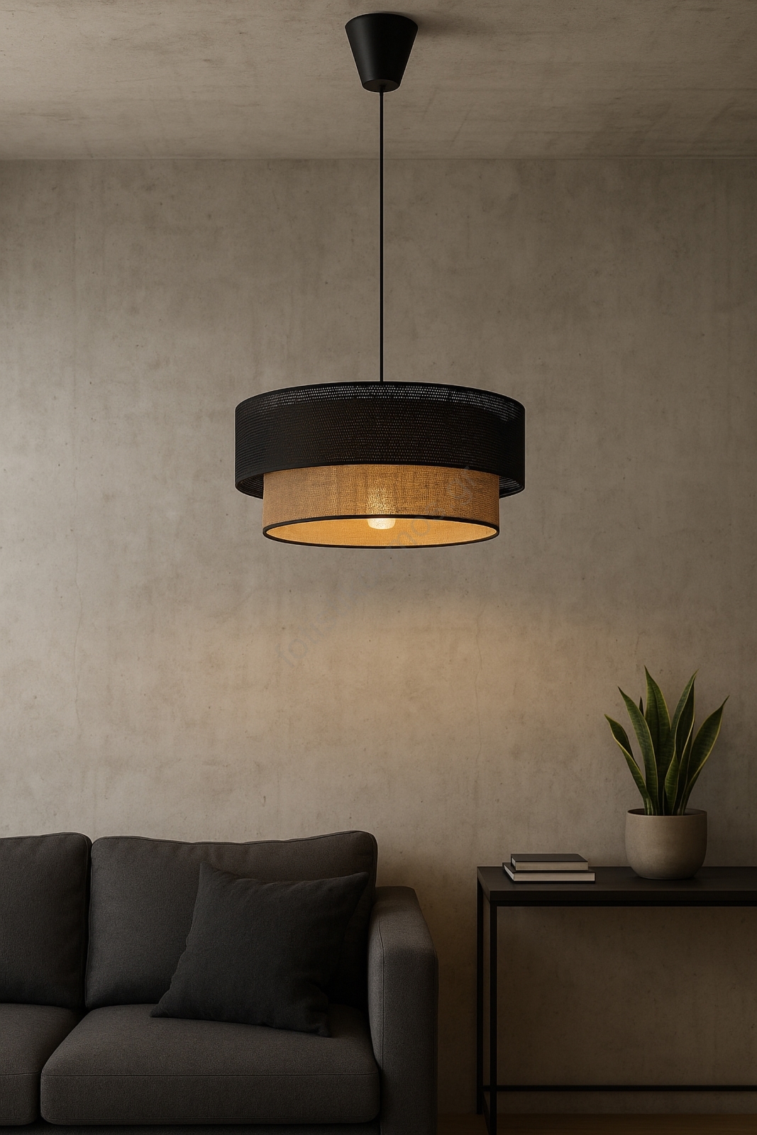 • Κρεμαστό φωτιστικό με καλώδιο BORHO, 1xE27/60W/230V, μαύρο/γιούτα