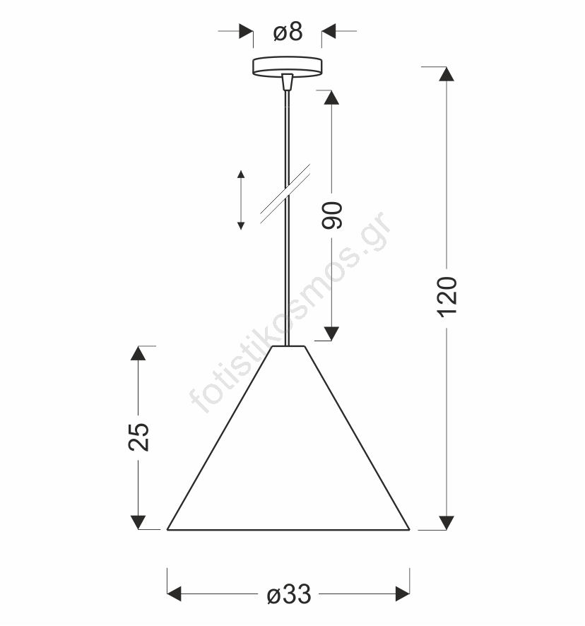 • Κρεμαστό φωτιστικό CONO με καλώδιο, 1xE27/40W/230V, επένδυση από καπλαμά έβενο