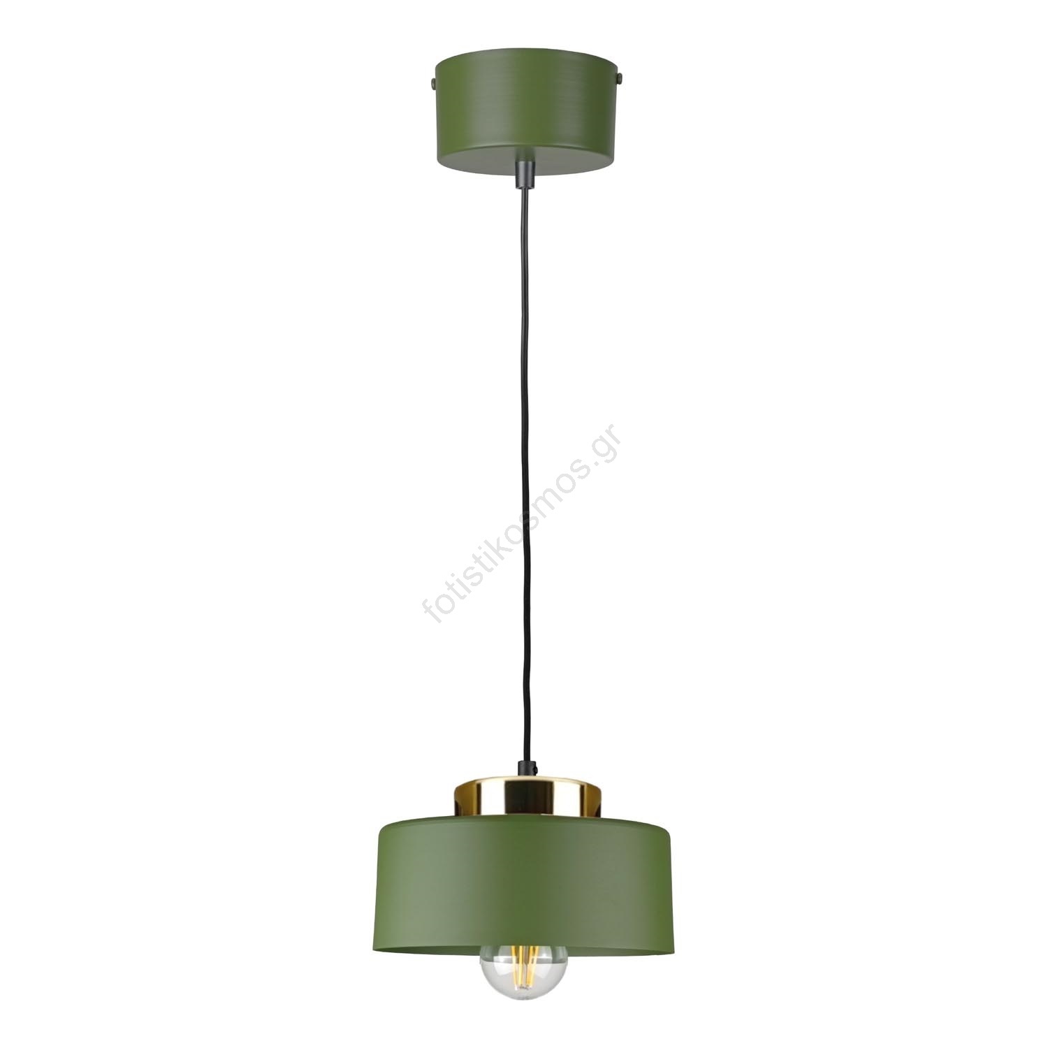 Κρεμαστό φωτιστικό με καλώδιο IGNIA 1xE27/60W/230V πράσινο/χρυσό | Fotisti kosmos