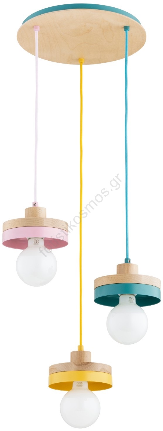 Κρεμαστό φωτιστικό με καλώδιο LARSO, 3xE27/15W/230V, πολύχρωμο