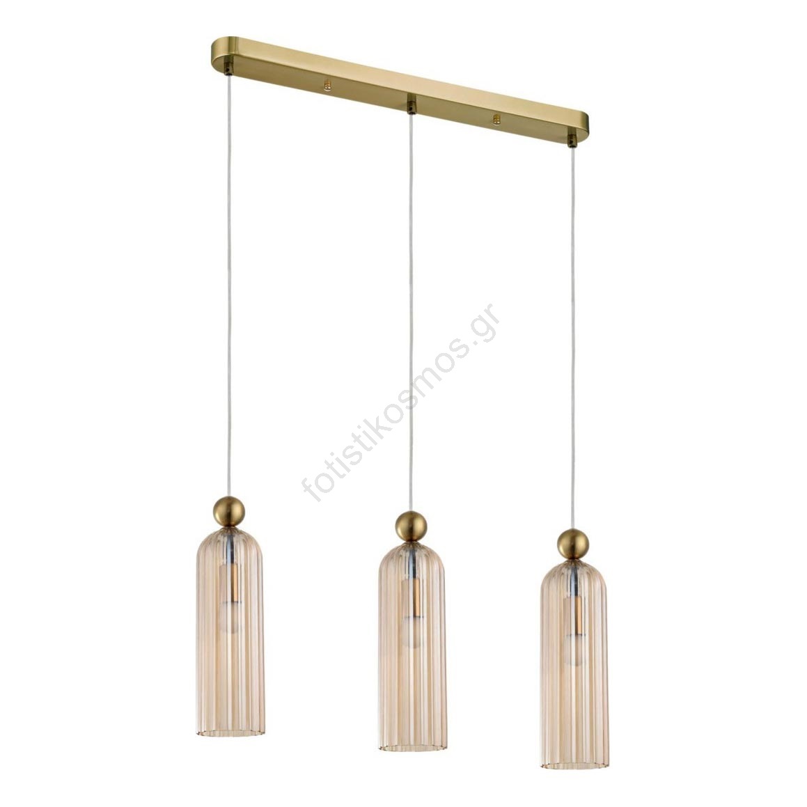 • Κρεμαστό φωτιστικό με καλώδιο PIEGA 3xE14/40W/230V μπρούτζος/καπνιστό μπεζ