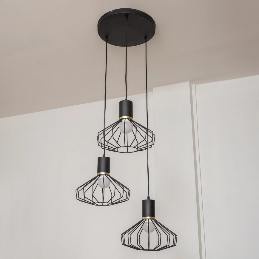 Κρεμαστό φωτιστικό με καλώδιο SOLANO 3xE27/15W/230V μαύρο/χρυσό | Fotisti kosmos