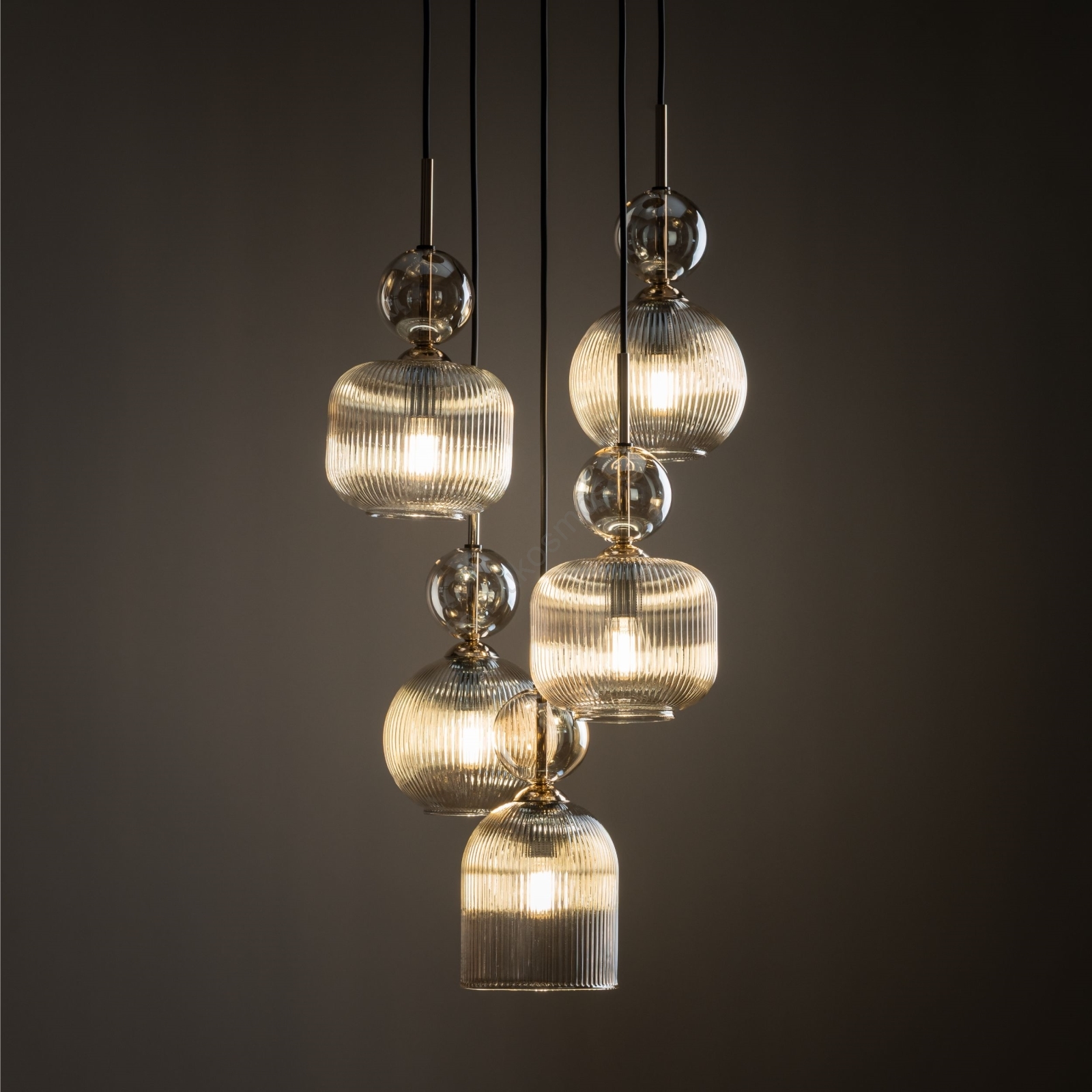 Κρεμαστό φωτιστικό με καλώδιο SOPHIA 5xE14/10W/230V μαύρο/καπνιστό μπεζ | Fotisti kosmos