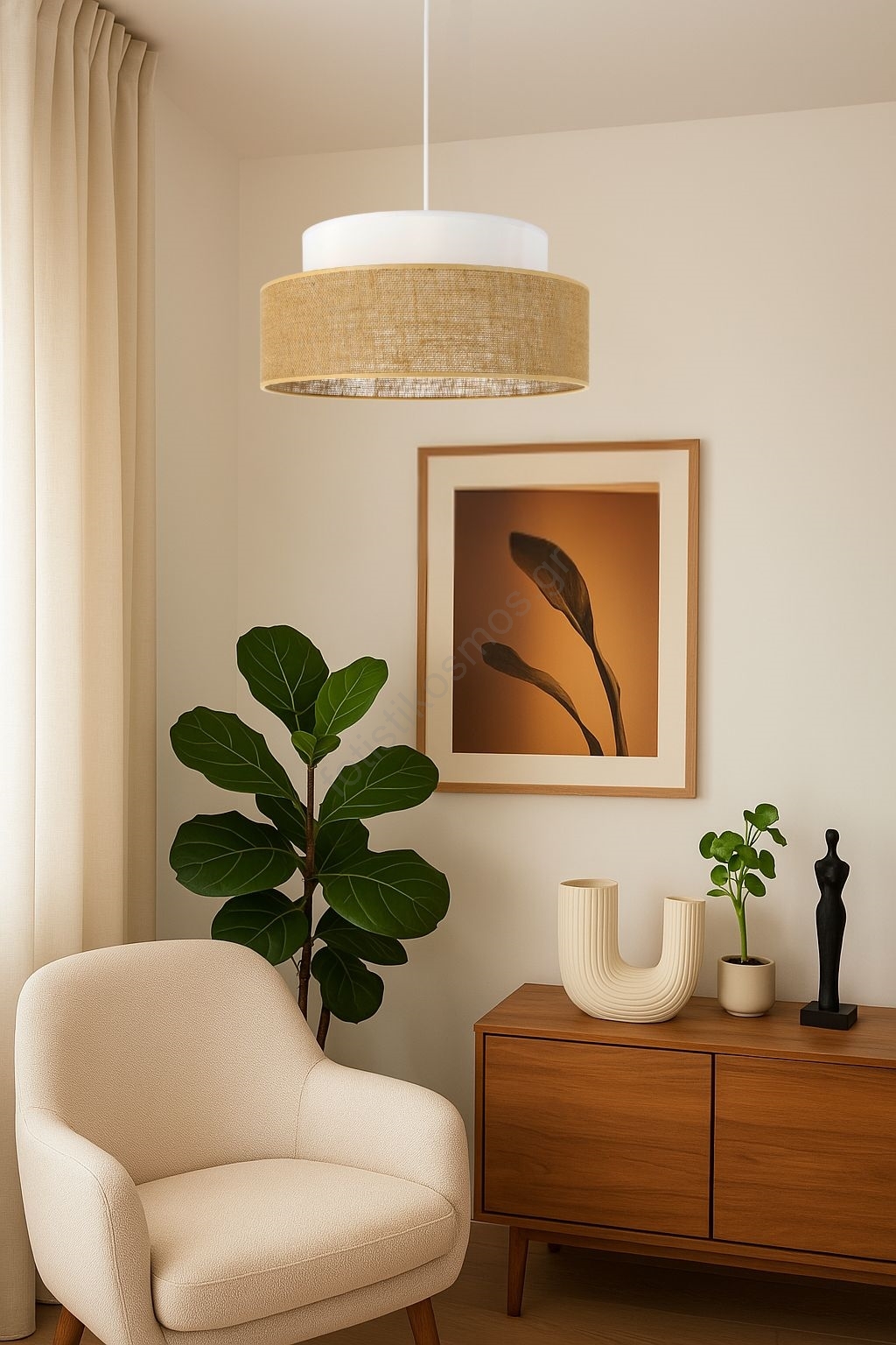 Κρεμαστό φωτιστικό οροφής BOHO 1xE27/60W/230V διάμετρος 40 cm λευκό/μπεζ | Fotisti kosmos