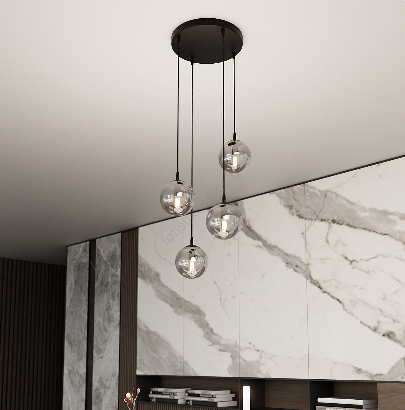 • Κρεμαστό φωτιστικό οροφής COSMO 4xE14/10W/230V διάμετρος 40 cm μαύρο/γκρι/μπεζ/διαφανές
