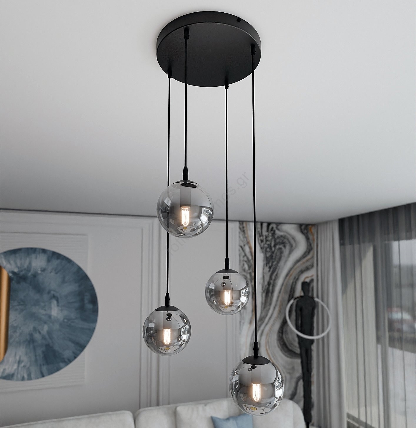 Κρεμαστό φωτιστικό οροφής COSMO 4xE14/10W/230V διάμετρος 40 cm μαύρο/γκρι | Fotisti kosmos