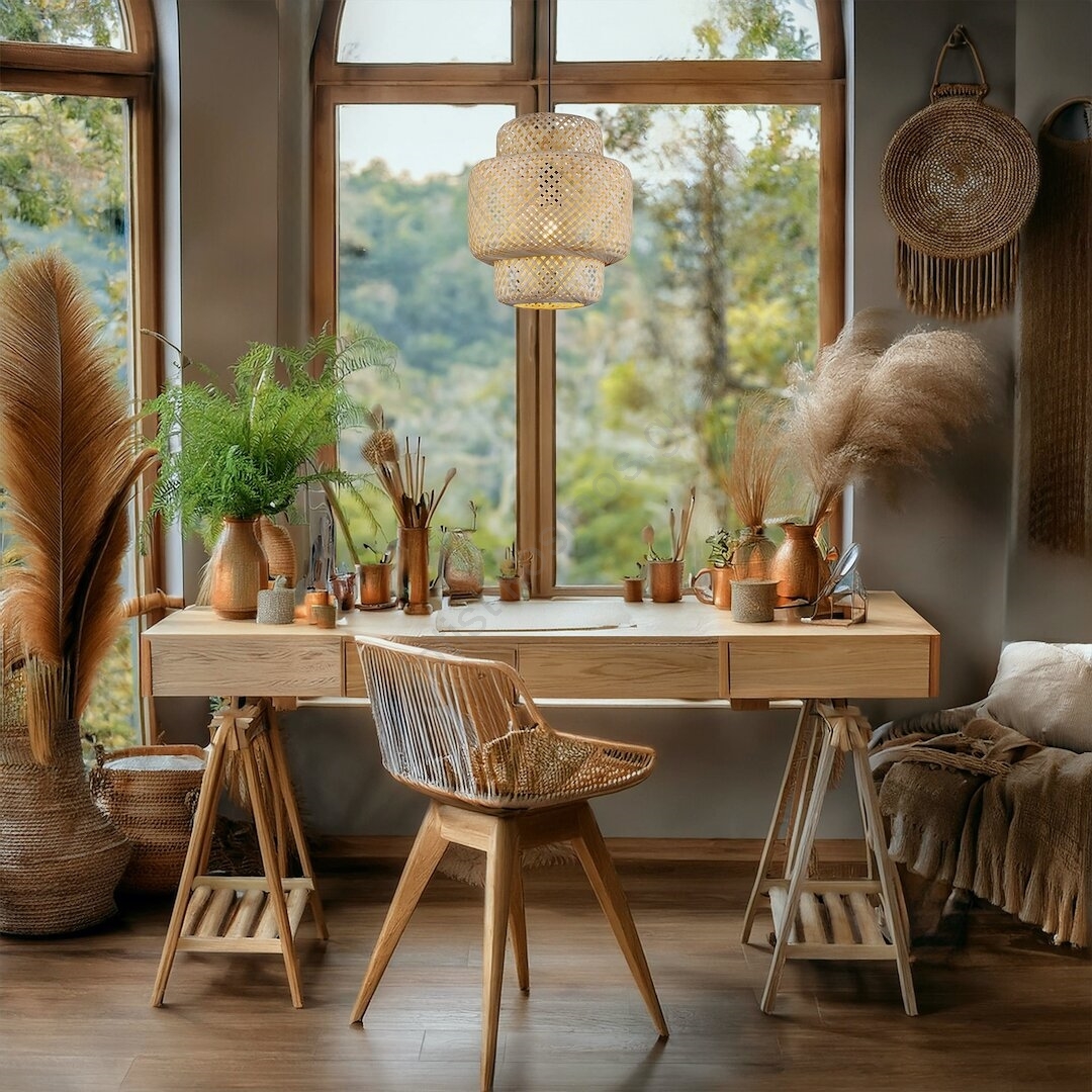 Κρεμαστό φωτιστικό οροφής HESTIA 1xE27/60W/230V διάμετρος 30 cm μπαμπού | Fotisti kosmos