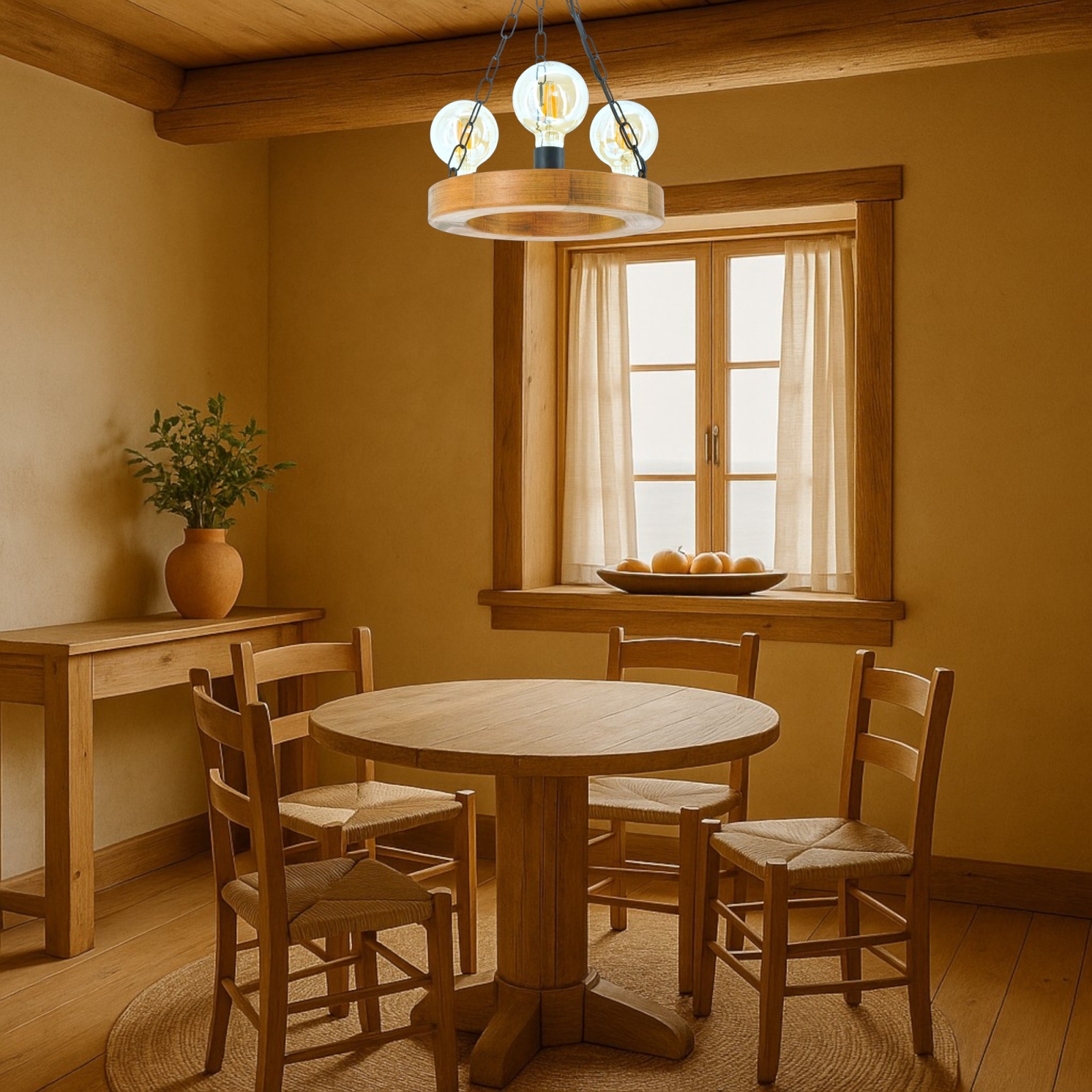 Κρεμαστό φωτιστικό οροφής IOS 3xE27/60W/230V διάμετρος 30 cm οξιά | Fotisti kosmos