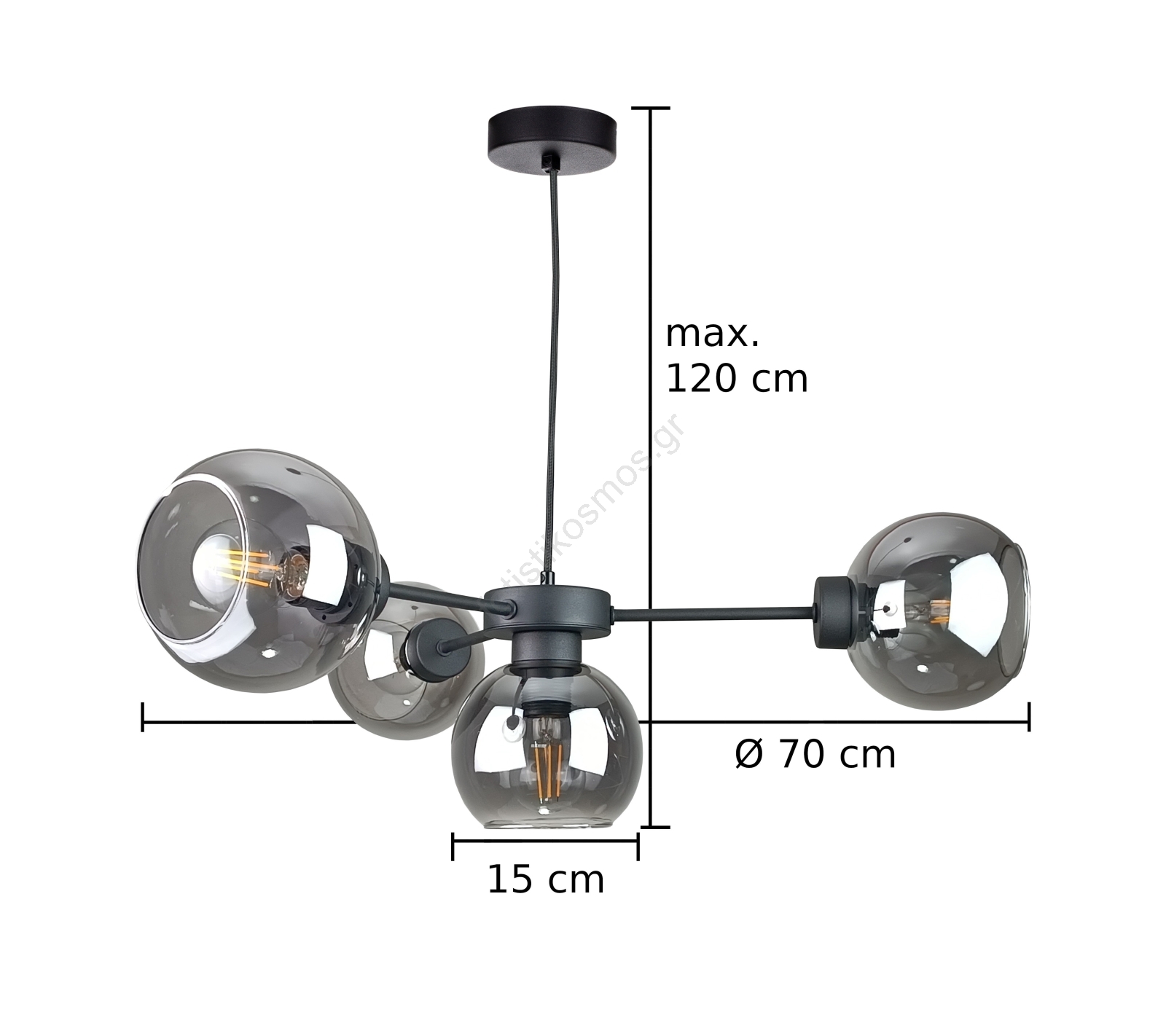 Κρεμαστό φωτιστικό οροφής KALIOPE 6xE27/60W/230V μαύρο/φιμέ μαύρο | Fotisti kosmos