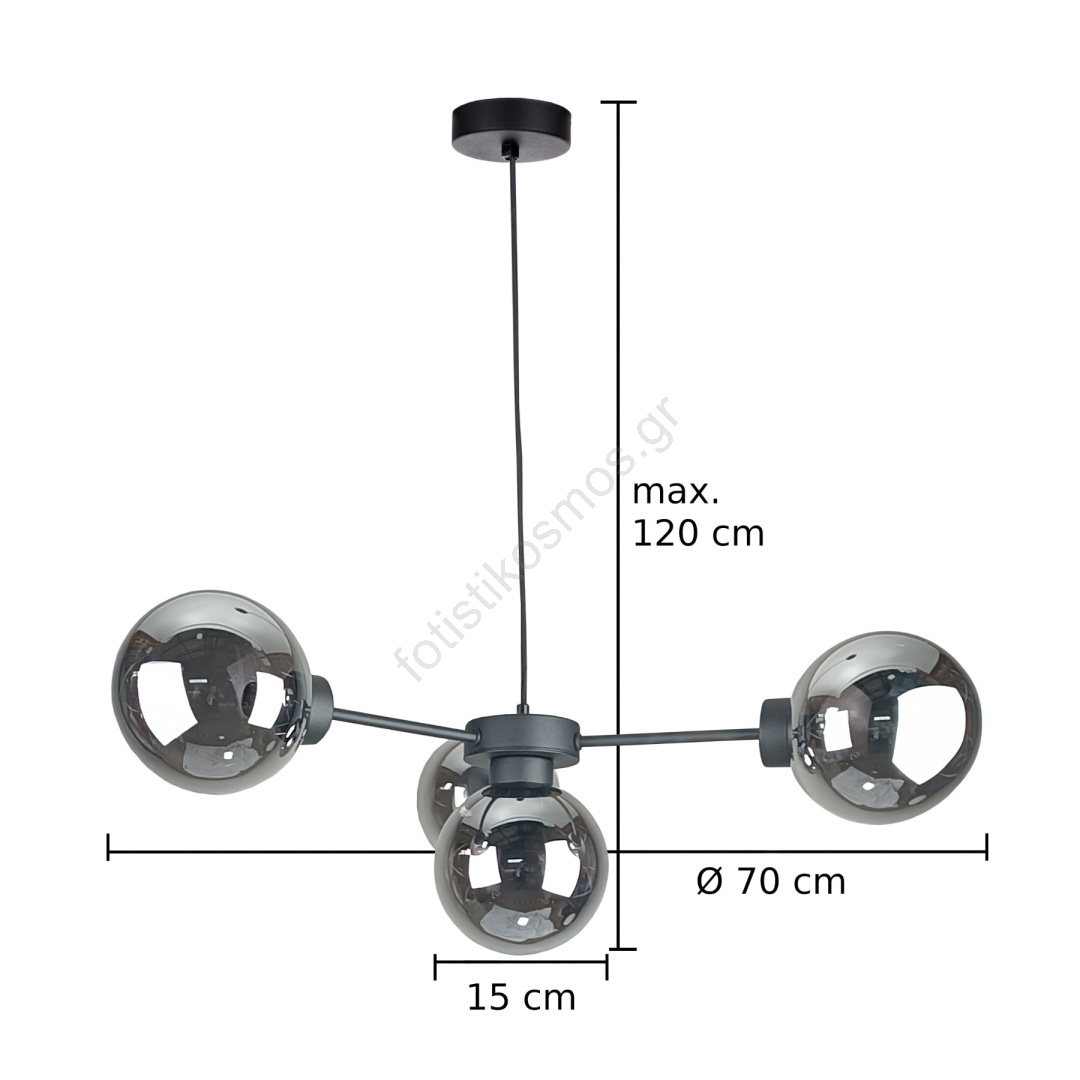 Κρεμαστό φωτιστικό οροφής KALIOPE II 4xE14/50W/230V μαύρο/φιμέ μαύρο | Fotisti kosmos