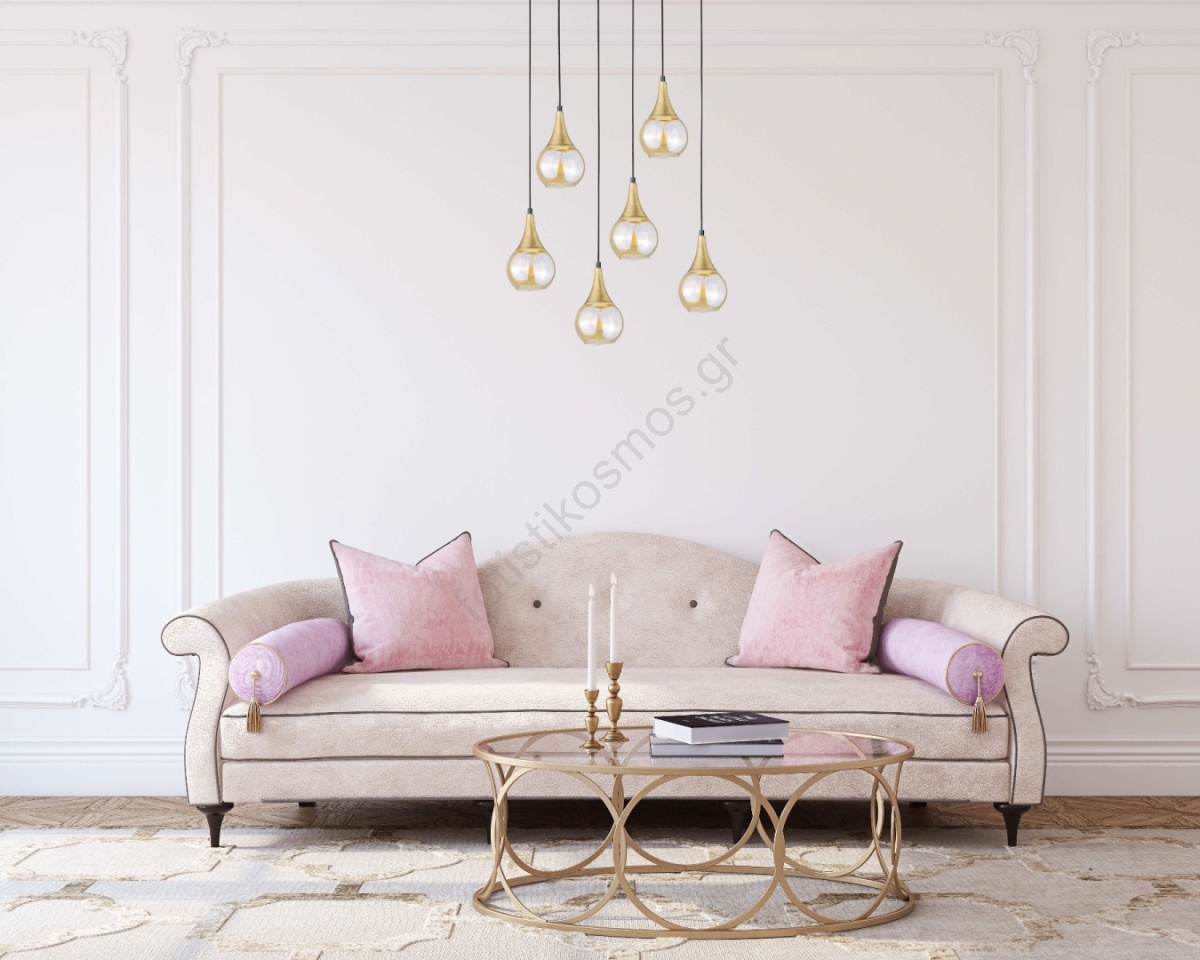 Κρεμαστό φωτιστικό οροφής LACRIMA HONEY 6xE27/60W/230V μαύρο/χρυσό/φιμέ μπεζ | Fotisti kosmos