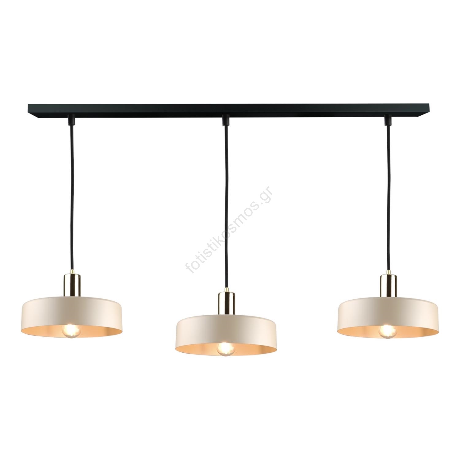 Κρεμαστό φωτιστικό με καλώδιο LATTE 3xE27/60W/230V, μπεζ/μαύρο/χρυσό | Fotisti kosmos