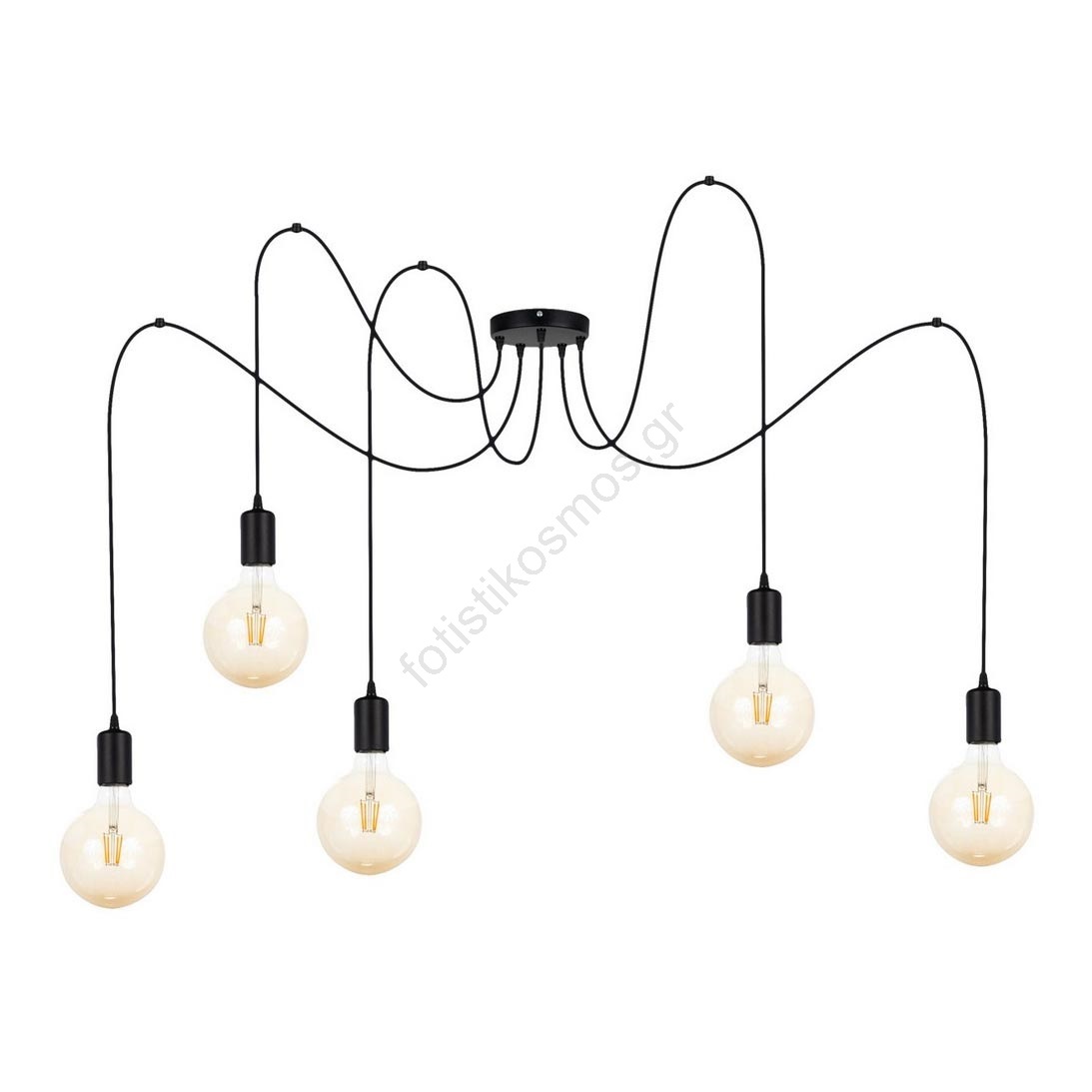 Κρεμαστό φωτιστικό οροφής MIROS 5xE27/60W/230V μαύρο | Fotisti kosmos
