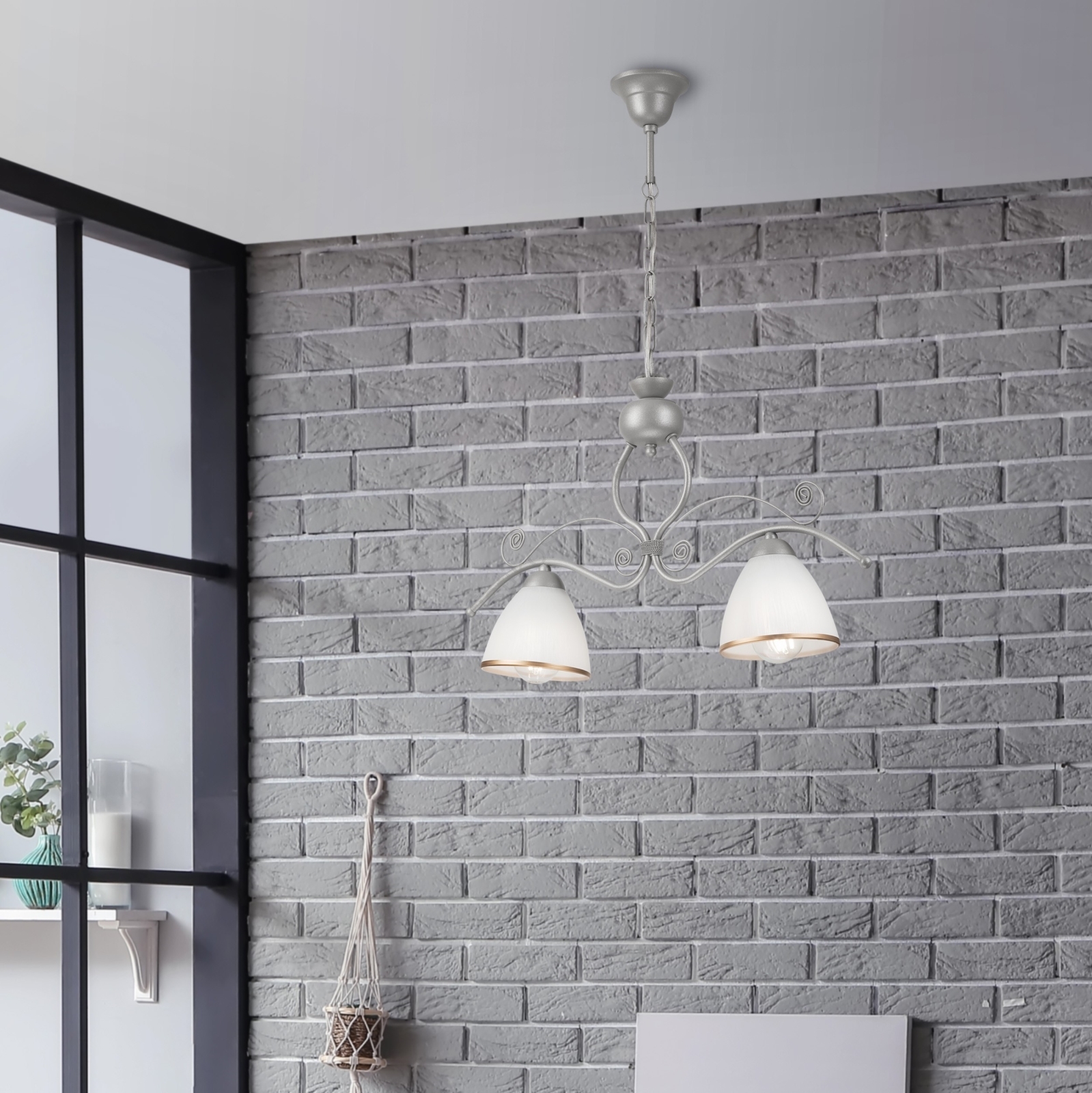 • Κρεμαστό φωτιστικό οροφής RETRO 2xE27/60W/230V ασημί