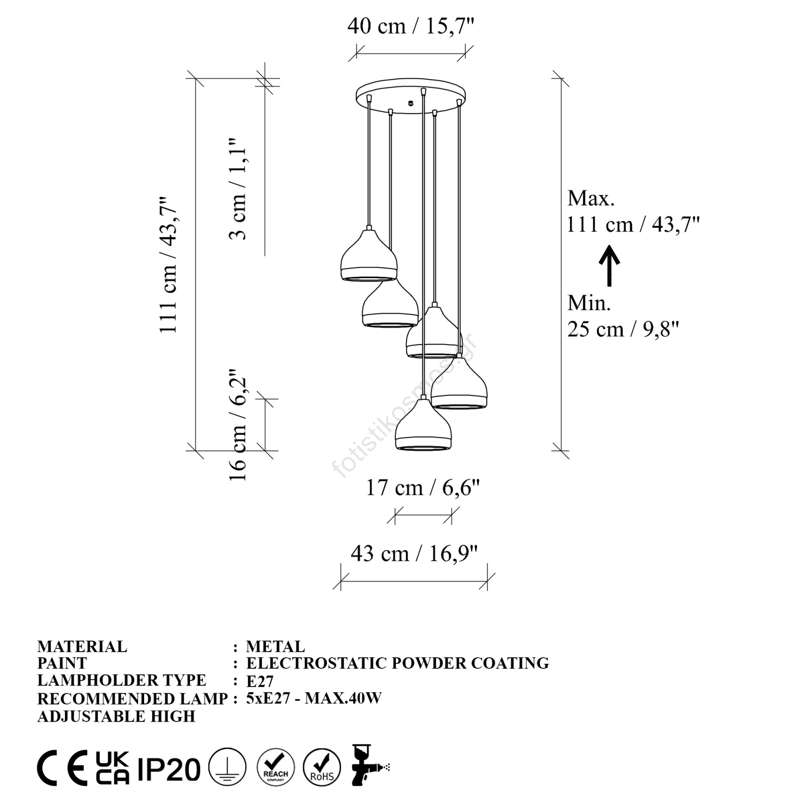 Κρεμαστό φωτιστικό οροφής YILDO 5xE27/40W/230V λευκό/χρυσό | Fotisti kosmos