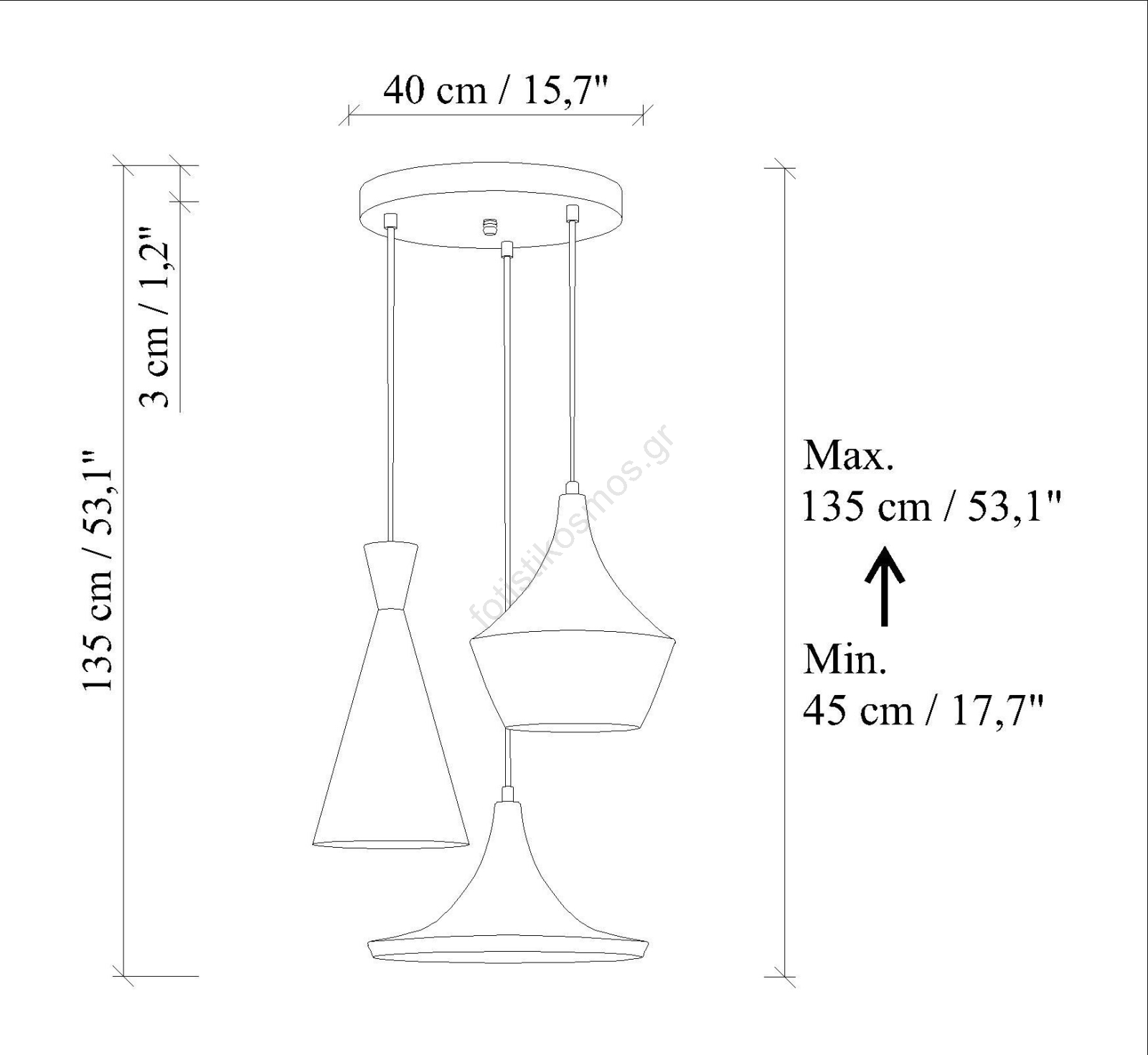 Κρεμαστό φωτιστικό TOM με καλώδιο 3xE27/40W/230V, πορτοκαλί | Fotisti kosmos