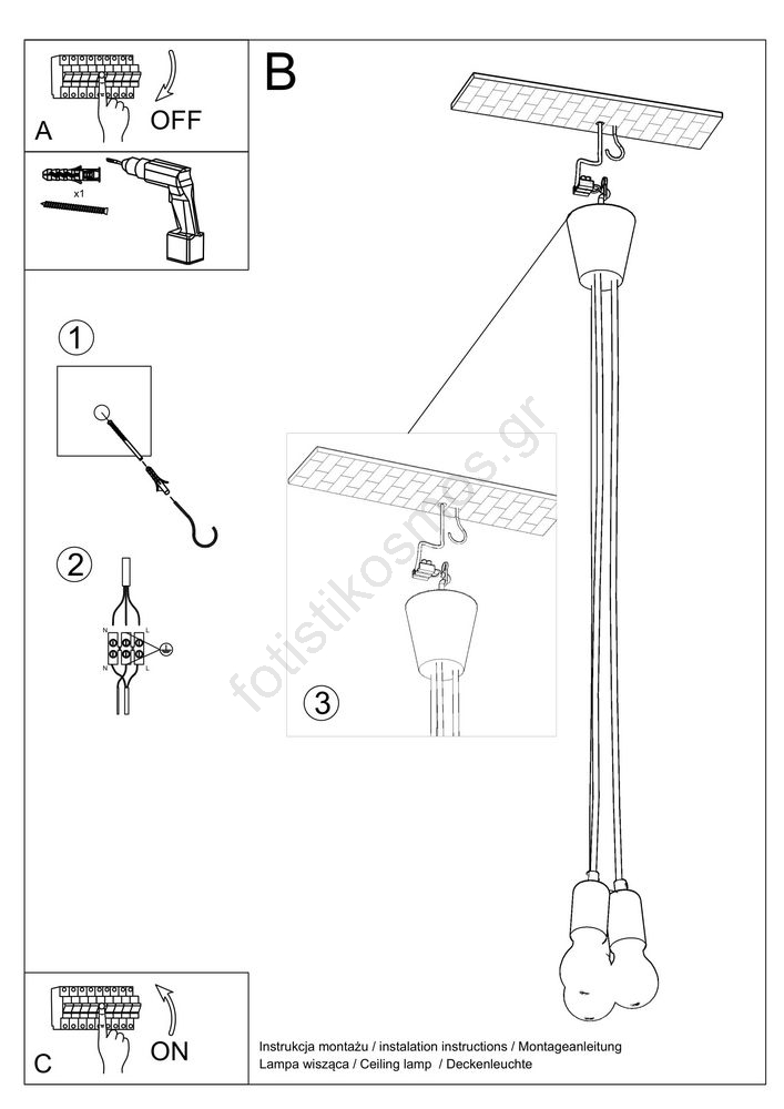 Κρεμαστό πολύφωτο με σύρμα DIEGO 3xE27/60W/230V πράσινο