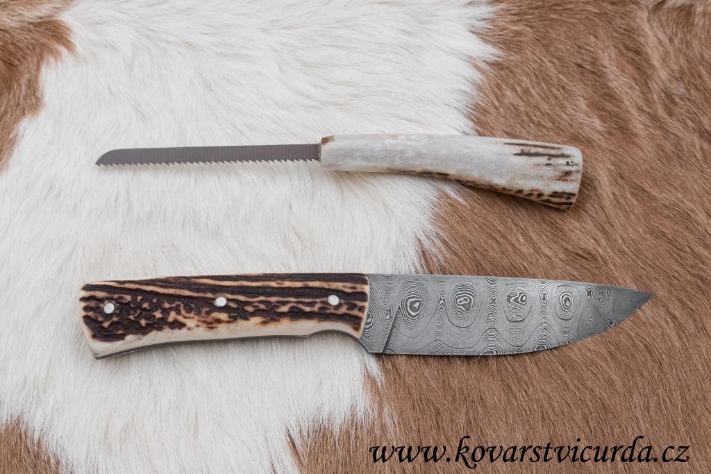 Κυνηγετικό μαχαίρι Δαμασκού με μίνι πριόνι 11 cm κέρατο ελαφιού