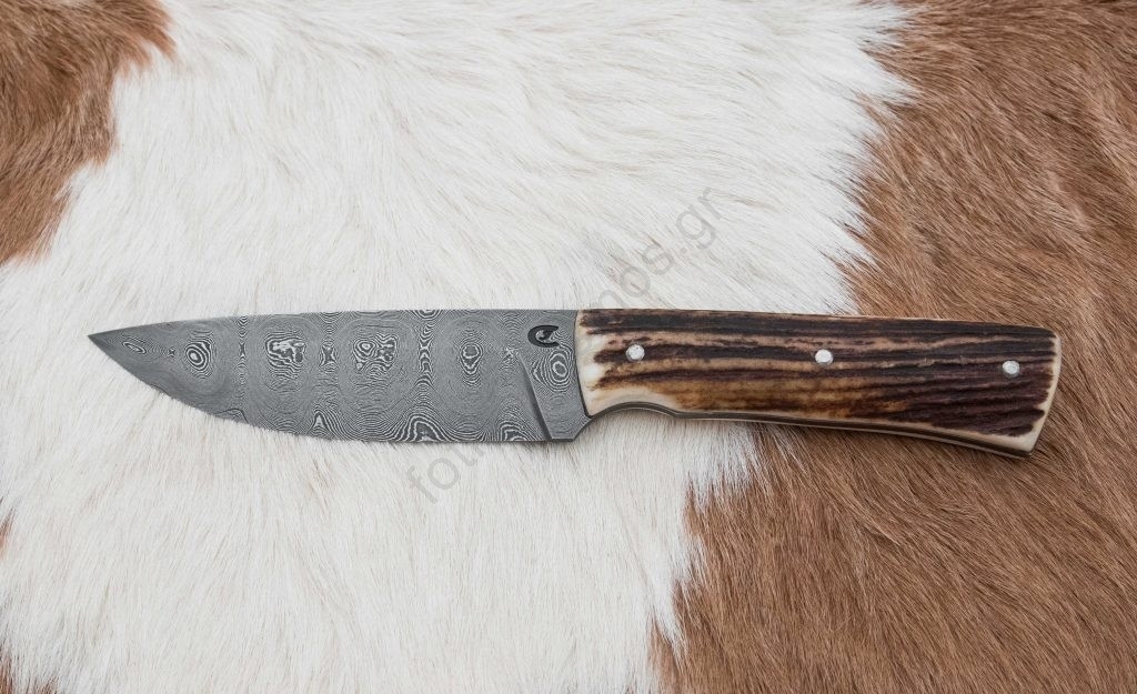 Κυνηγετικό μαχαίρι Δαμασκού με μίνι πριόνι 11 cm κέρατο ελαφιού | Fotisti kosmos