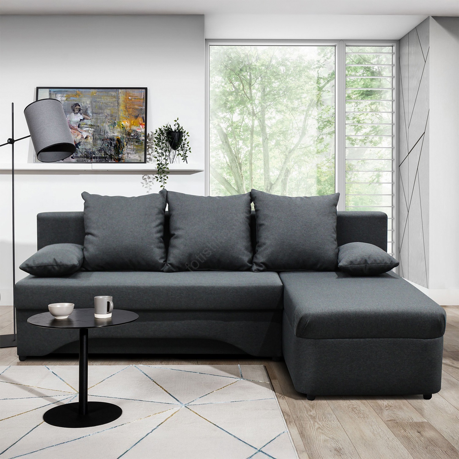 Unive. γωνιακός καναπές-κρεβάτι ALMEIDA σε σχήμα L με αποθηκευτικό χώρο, ανθρακί | Fotisti kosmos
