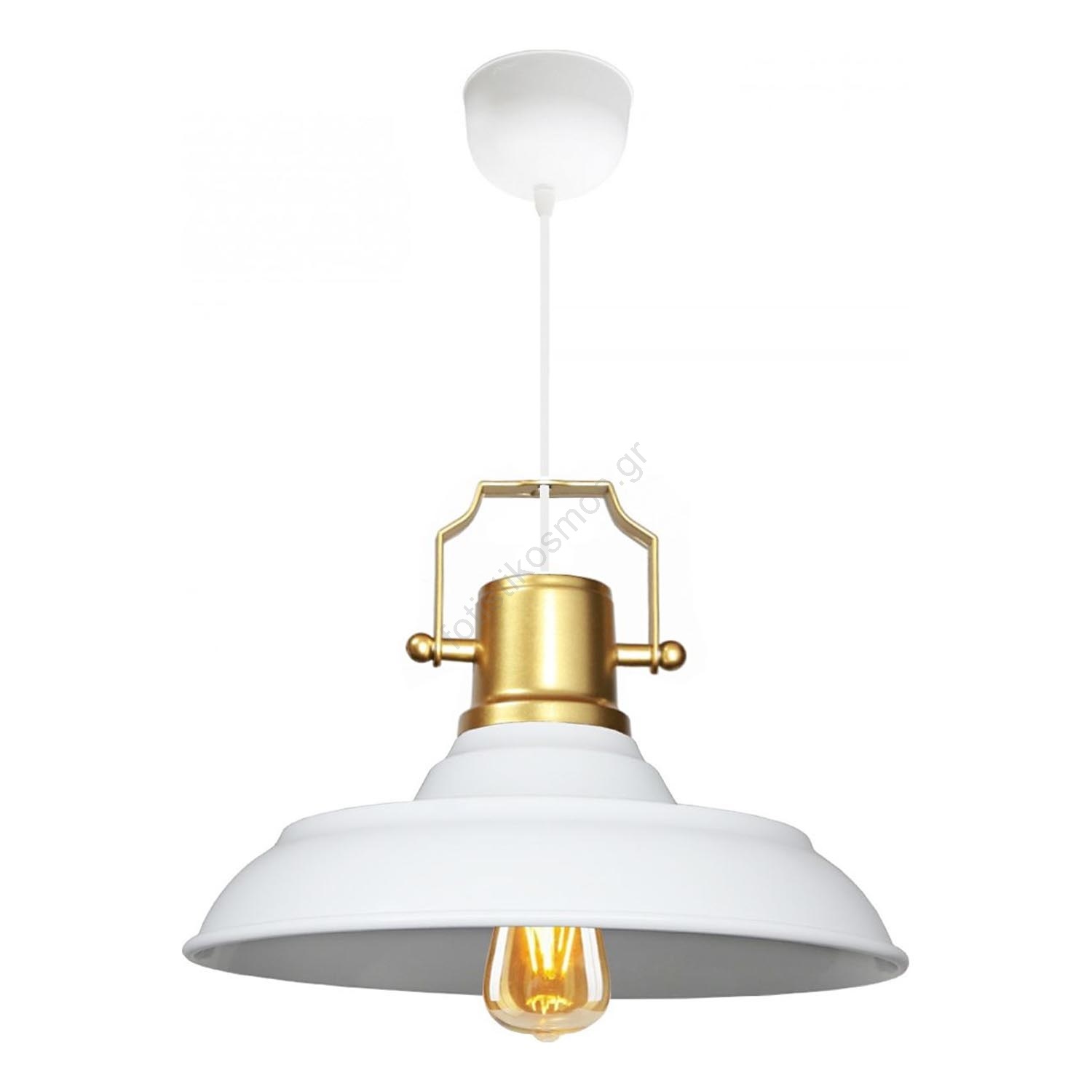 Κρεμαστό φωτιστικό με καλώδιο AYD 1xE27/40W/230V λευκό/χρυσό | Fotisti kosmos