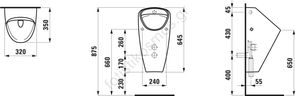 LAUFEN H8410610000001 - Ουρητήριο CAPRINO με εσωτερική παροχή, οπίσθια αποχέτευση, κεραμικό/λευκό