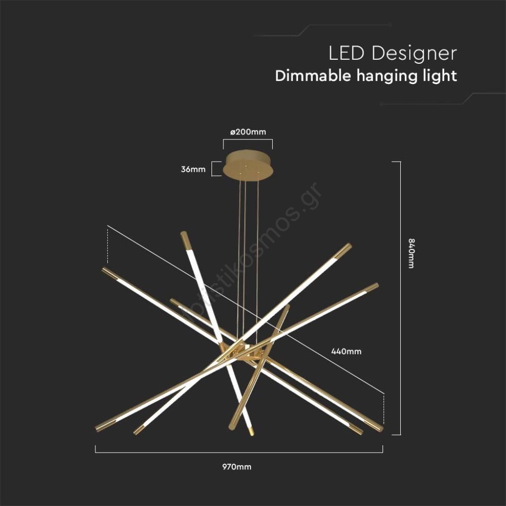 Led Dimmable κρεμαστό φωτιστικό οροφής LED/50W/230V 3000K χρυσαφί | Fotisti kosmos