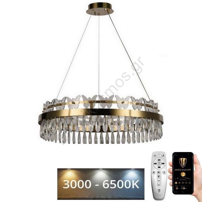 LED Ρυθμιζόμενο κρυστάλλινο φωτιστικό οροφής με καλώδιο LED/80W/230V 3000-6500K χρυσό + τηλεχειριστήριο