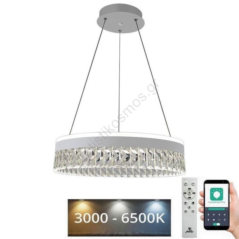 • LED Dimming κρυστάλλινο κρεμαστό φωτιστικό οροφής κρεμαστό φωτιστικό οροφής LED/90W/230V 3000-6500K γυαλιστερό χρώμιο + τηλεχειριστήριο